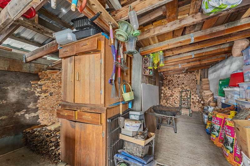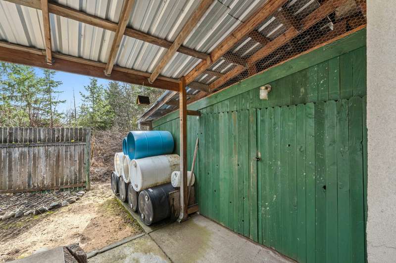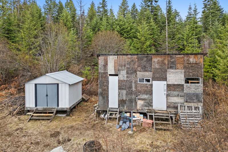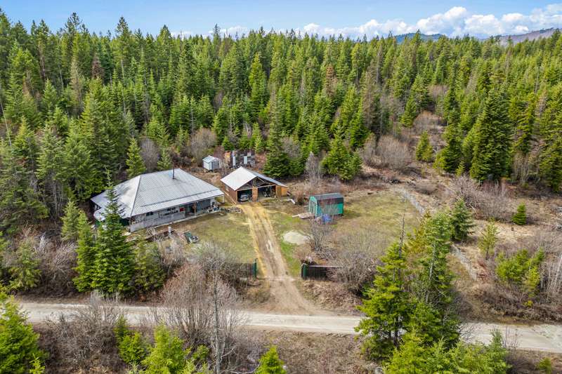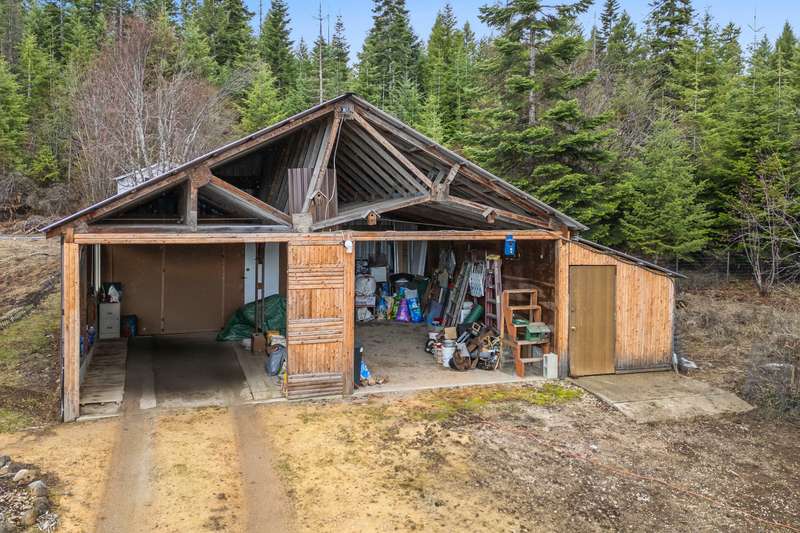 Enjoy living in a home set on nearly 20 acres of privacy in the woods. A unique concrete construction residence with stucco exterior. One bedroom and one bath with an extra room that could be an office or second bedroom. Very nice woodworking touches adds to the charm. The attached shop/garage includes a swing arm lift with a chain and pully system, and a air compressor system. There is a wood stove in the shop for heat. Detached from the house is a 34X24 wood building with 2 spots for parking and a chicken coup. There are 3 more sheds for storage. It's a short drive to all types of recreation.