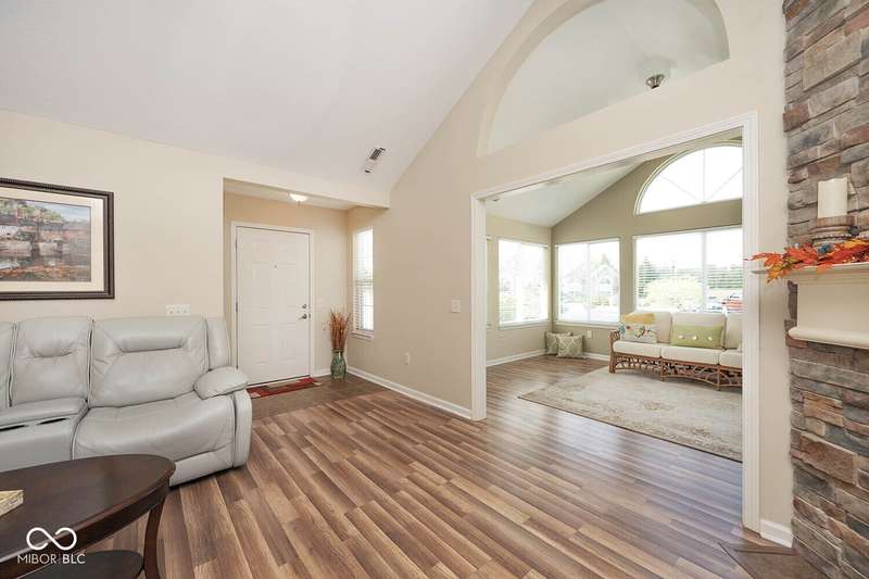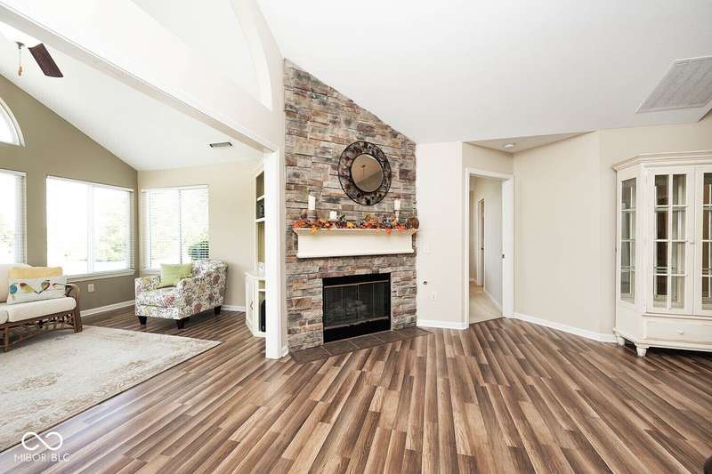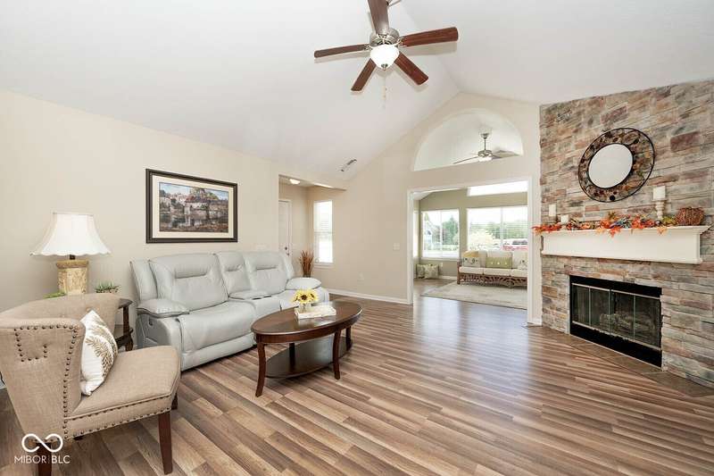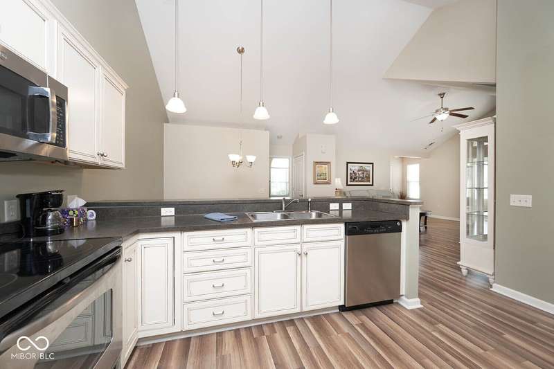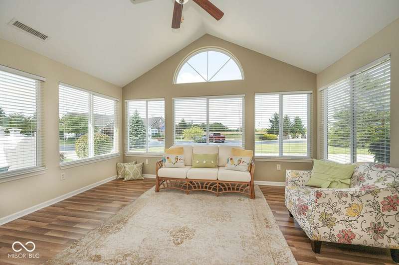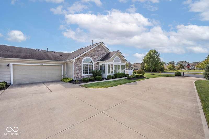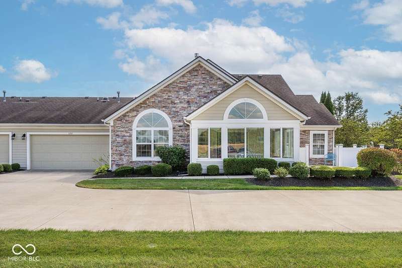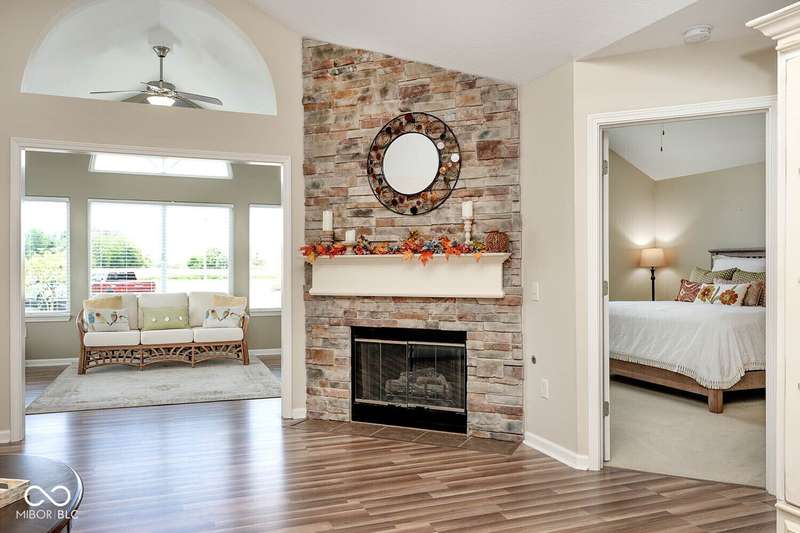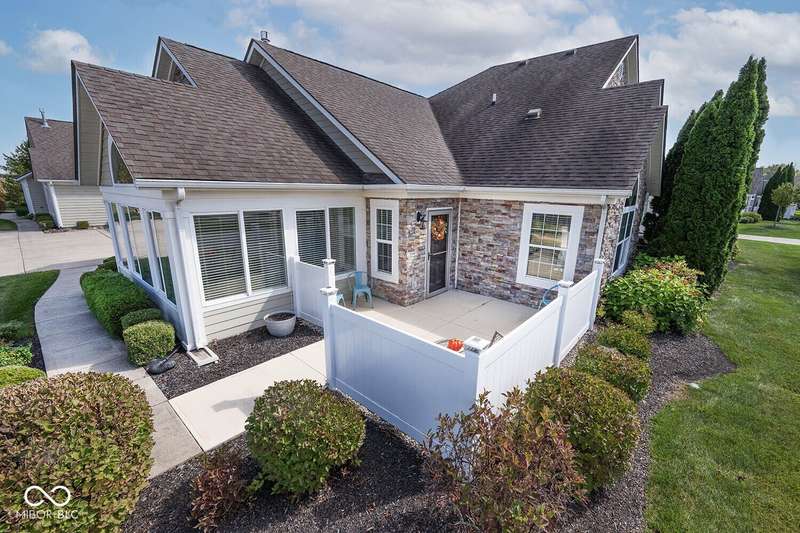 Welcoming Fenced Patio Courtyard Great for Entertaining,Originally the Builder's Model Home this unit has Upgraded Features,Custom Kitchen Cabinets & Extra Pantry,Beautiful Stone Gas Fireplace,Open Split Bedroom Floorplan,Relax & Enjoy as Sunshine abounds in Window Lined Sunroom,Spacious Owners Bedroom with On Suite & Walk in Closet,All Appliances Included, Laundry Room with Utility Sink & Storage Closet,Plantation Shutters Throughout,Rural Setting yet Convenient to Shopping and Deliveries, Community Offers Lawn Care/Landscaping,All Unit Exterior Maint.,Trash & Snow Removal,Clubhouse, Pool & Exercise Room. Water Softener is rental.