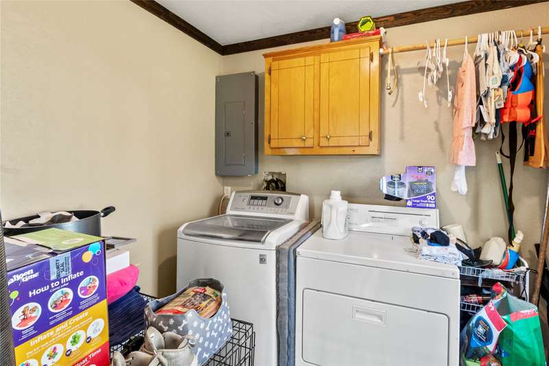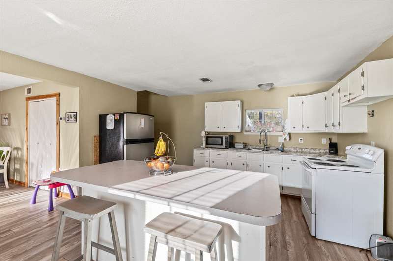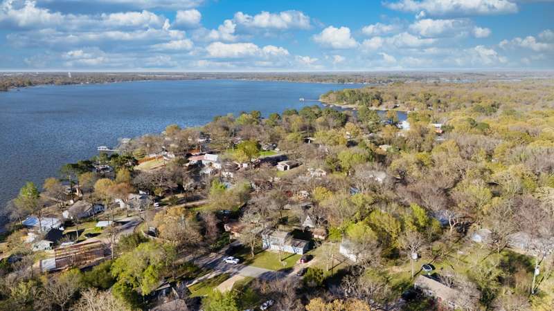 Charming and cozy off-water home featuring 4 bedrooms and 2 bathrooms, complete with a detached garage and plenty of parking space. The main level offers a spacious primary bedroom and bathroom, a welcoming living area, a breakfast bar, and a formal dining area (currently being used as a second living space). Upstairs, you'll find three additional bedrooms and a shared bathroom. The detached garage includes a 2-car bay and extra storage space for convenience. The expansive backyard is ideal for family gatherings or entertaining friends. Short-Term Rentals (STR) are allowed, offering great potential. Plus, the community boat ramp is just one street away, providing easy access to enjoy all the perks of lake living!