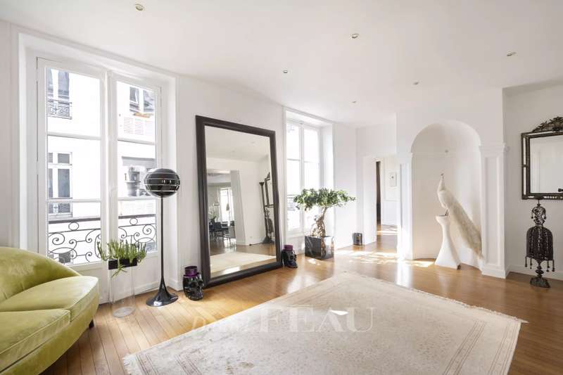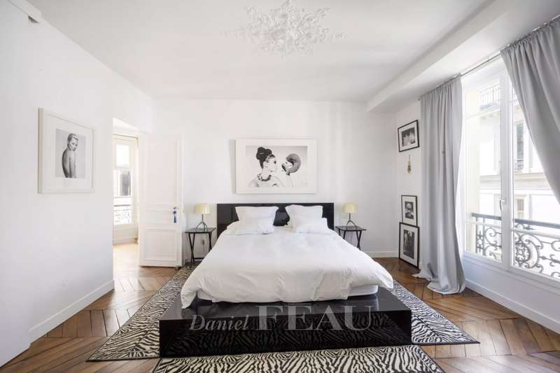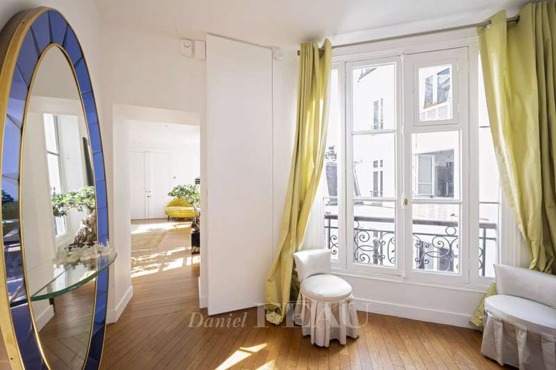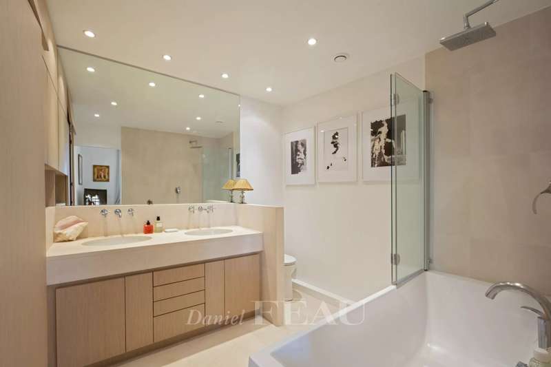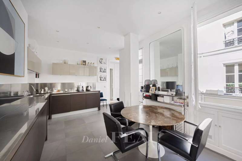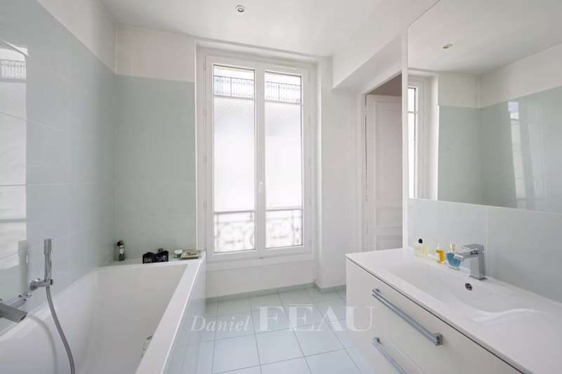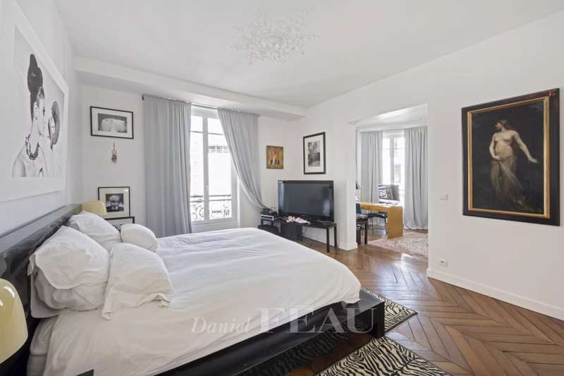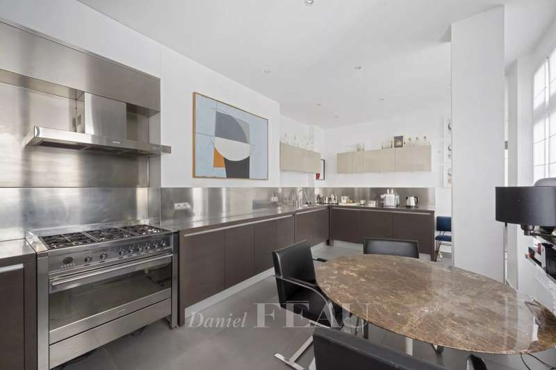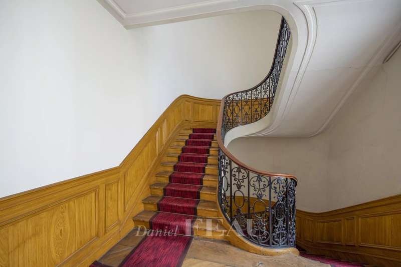 Cadet neighbourhood. This corner apartment offering 240 sqm of floor space and 227 sqm of living space as defined by the Carrez Law is on the 3rd floor of a fine mid 19th century Haussmannian building. Meticulously renovated, it includes a 45 sqm living/reception room, a dining room, a separate kitchen, a master suite with a study, two further bedrooms with bathrooms and wc, and a dressing room. A 4th bedroom would be possible. The apartment is particularly bright, and opens onto a continuous balcony benefiting from open views. Possible premises for a self-employed professional.