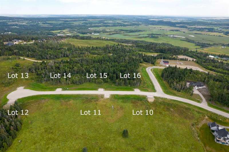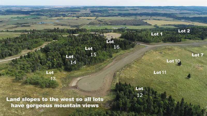 Discover this rare opportunity to own a breathtaking 2.69-acre parcel in one of the most private and picturesque rural subdivisions in Foothills County. It feels like you can touch the sky from the exclusive 14-lot development southwest of Priddis, this corner lot offers panoramic views of the majestic Rocky Mountains and the City of Calgary skyline — truly awe-inspiring backdrops for your dream home. With 9 lots already sold and only 5 lots still available, this limited offering is an opportunity to build in a serene, upscale, rural community surrounded by nature, wildlife, and the vibrant colors of native wildflowers like Western Wood Lilies. Strategic placement of the large municipal reserve and abundant environmental reserves will help maintain the sense of tranquility and privacy for the lucky residents who settle here. Enjoy the freedom to build on your timeline—there are no building commencement deadlines, and thoughtfully designed restrictive covenants protect your investment without limiting your vision. Utilities, including gas and electricity, are conveniently located at the property line, and a drilled well is already in place. Located just 25 minutes from Calgary via Hwy 22X and the south leg of the Ring Road, this property blends rural lifestyle with easy city access. The community is served by both public and separate schools and is minutes from the Priddis Greens Golf Course and the outdoor paradise of Kananaskis Country. Nearby, the hamlet of Priddis has over 120 years of history of being the hub of social and team activities to suit all age groups—making this an ideal setting for families or anyone seeking a nature-immersed lifestyle community. Don't miss this once-in-a-lifetime opportunity to secure your slice of paradise with views that must be seen to be believed. Click "additional images" for the link for a 360° tour and experience the full beauty of this remarkable property in every direction. (Lots 10, 12, 14, 15 & 16 are the last 5 lots available.)