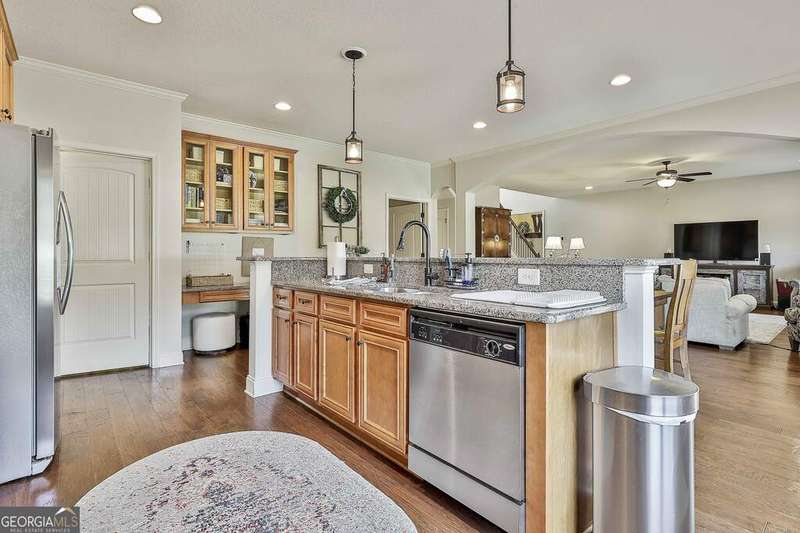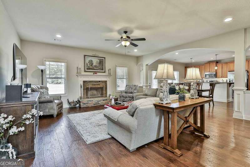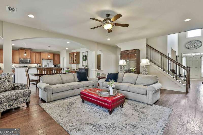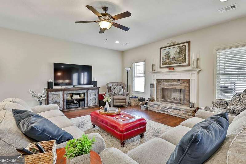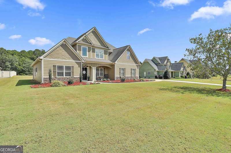 Beautiful move in ready craftsman home in a great neighborhood. At over 3600 square feet, there is plenty of space for everyone. Beautiful 2 story foyer as you enter the home. The formal dining room has hardwood floors and beautiful wainscotting and crown molding. The oversized family room has an open sightline to the breakfast area and kitchen. Hardwoods throughout main level, except owners suite. The large kitchen has granite counters, a large island, stainless appliances, and plenty of counter space. The kitchen also features a large walk in pantry. A large laundry/mud room is just off the kitchen before entering the garage. The large owner's suite is also on the main. It has a trey ceiling and is large enough for sitting area. Owner's bath features a long granite double vanity, tile floors, soaking tub, oversized walk-in tile shower, and huge walk-in closet. The upstairs has 3 oversized bedrooms. One has a private bath, and another has an attached bonus room. There is also a loft area and a jack and jill bath. Large covered back patio. Huge flat, sodded, and open backyard. Excellent neighbors and neighborhood. Plenty of room to add a shop and/or pool. Two new Trane HVAC systems were installed mid 2024, as well as a new garage door opener. 10 minutes from Peachtree City and shopping. 15 minutes from I-85 and 10 minutes from downtown Senoia.