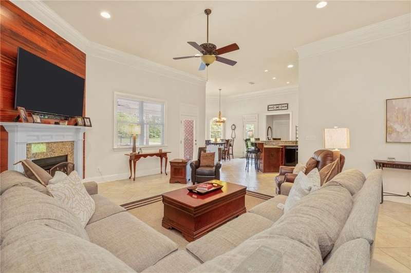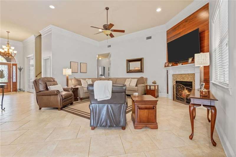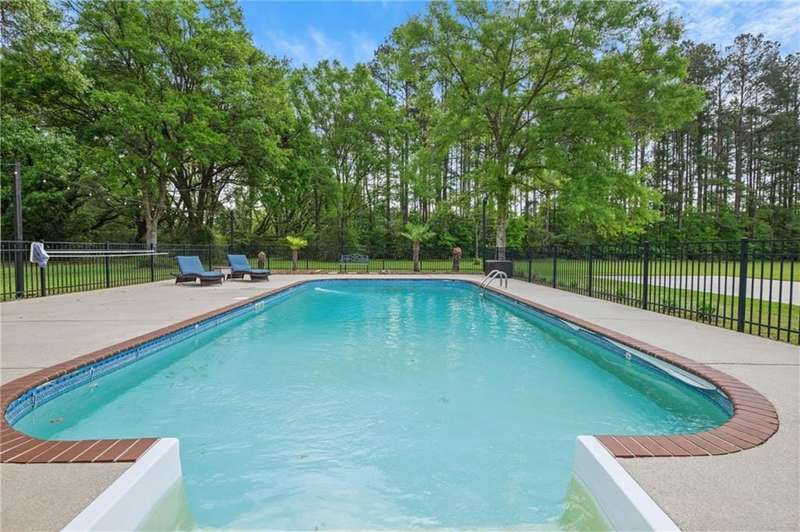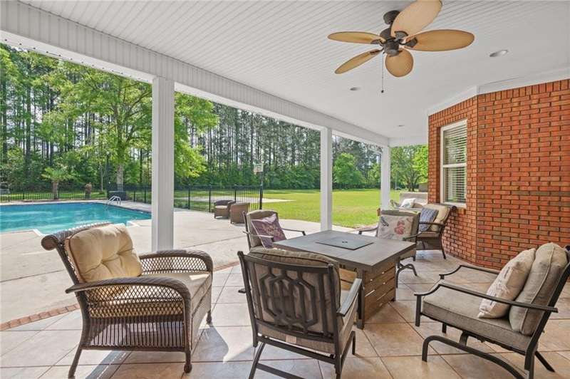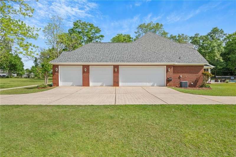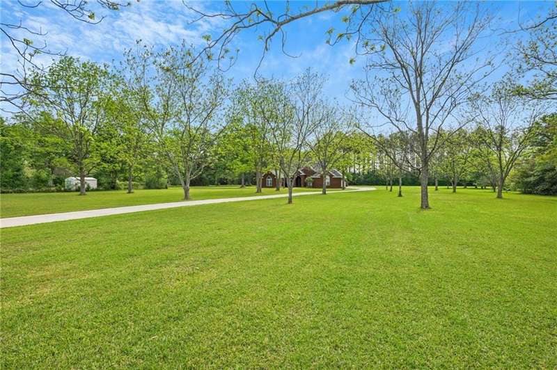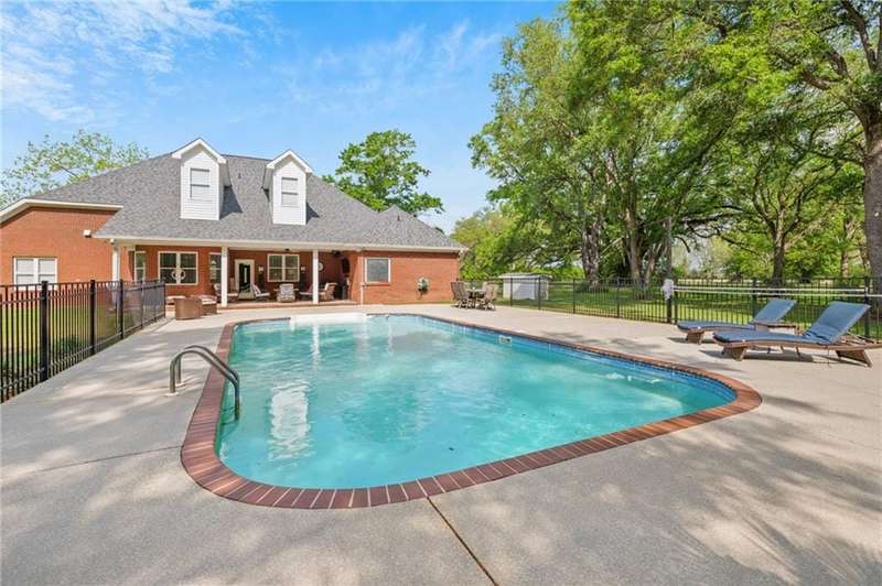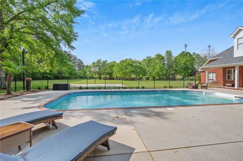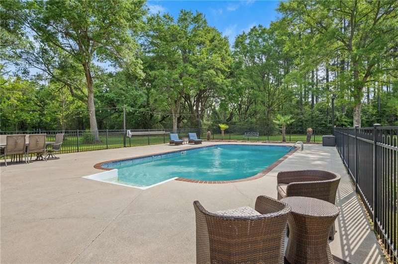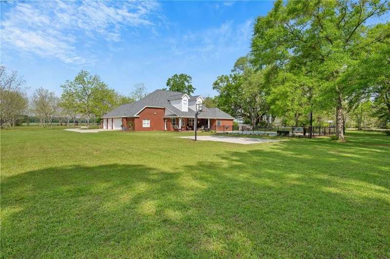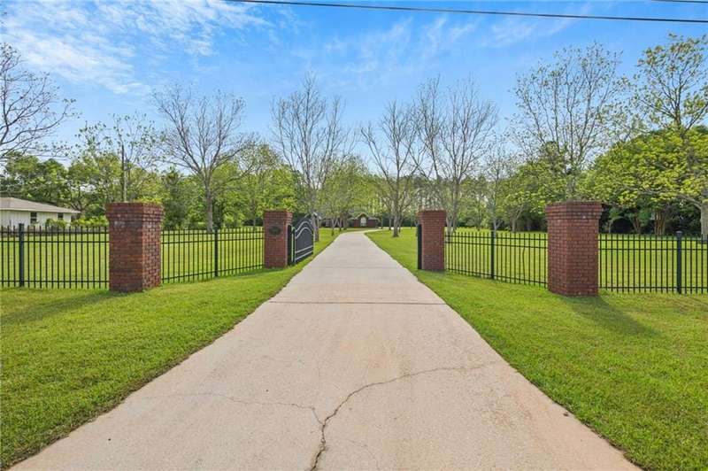 Exquisite Estate in the Beautiful Tanner Williams Community! Welcome to this stunning estate home nestled on 2.10 acres in the desirable Tanner Williams community. Custom built by GLH Home Builders (George Haggard). From the moment you arrive, you'll be captivated by the pecan-lined front yard, gated brick entry, and classic wrought iron fencing that set the stage for timeless Southern charm. Inside, soaring ceilings and custom specialty ceilings elevate every room, offering a sense of grandeur throughout. The spacious layout features a formal dining room, a dedicated office with rich wooden built-ins, and a large family room with a cozy corner gas log fireplace, perfect for gatherings. The heart of the home is the chef's kitchen, thoughtfully designed with a decorator's vent hood, island with breakfast bar, walk-in pantry, appliance garage, and double ovens. Just off the kitchen, the sunny laundry room boasts an abundance of cabinetry and natural light. Retreat to the luxurious master suite featuring dual walk-in closets and a spa-inspired bathroom with his-and-her vanities, a soaking tub, and an oversized open shower. The secondary bedrooms are connected by a Jack and Jill bath, each with its own private vanity. Upstairs, a spacious bonus room offers flexibility as a man cave or home theater. There is an additional bedroom with a full bath, ideal for guests or multi-generational living. Outside is your private paradise. The expansive back patio includes a TV area and plenty of room to relax or entertain beside the fully fenced in-ground pool. A separate basketball court adds even more outdoor fun. Additional highlights include a 4-car garage (or 3-car with utility garage), full bath off the garage entry, and ample storage throughout. New Fortified roof in 2023. This extraordinary property is the perfect blend of luxury, comfort, and space, ready to welcome you home! Buyer responsible for verifying all measurements and relevant details.