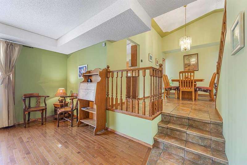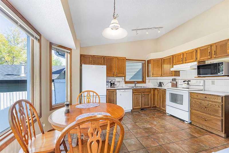 OPEN HOUSE 1-3 pm Saturday & Sunday, September 27th & 28th. Welcome to this beautifully maintained family home tucked away on a quiet street in Lake Sundance. Offering over 2,200 sq. ft. of comfortable living space, this 4-bedroom, 4-bathroom residence combines timeless character with modern updates—plus the bonus of no front sidewalk and a no-grass, low-maintenance yard, meaning less shoveling in winter and more time to enjoy year-round living! Step into the sun-filled, south-facing living room where soaring vaulted ceilings create a bright and airy atmosphere. The spacious eat-in kitchen features abundant cabinetry and quartz countertops, and opens onto a large deck—perfect for summer barbecues and family gatherings (BBQ hookup included). The elegant formal dining room, also with vaulted ceilings and side windows, is ideal for hosting dinner parties. Relax in the cozy sunken family room, complete with wood wainscoting and a granite tile-faced fireplace. A versatile main-floor office (or bedroom) adds flexibility, while a nearby hallway provides washer/dryer hookups, garage access, and a convenient guest bathroom. Gleaming oak hardwood floors flow throughout the main level, adding warmth and sophistication. Up the hardwood staircase, you’ll find a private retreat with three bedrooms and a full family bath. The spacious primary suite features a 4-piece ensuite and walk-in closet, with hardwood flooring extending seamlessly across the upper level. The finished basement offers a versatile, extra-large recreation space—perfect for a games room, theatre, or both. A dedicated laundry room with sink and toilet adds convenience, while a large storage area and handy workbench provide plenty of utility. This poly-b–free home comes with thoughtful modern upgrades, including a high-efficiency furnace, on-demand hot water system, and central vacuum. The insulated garage is equipped with an electrical panel and a 220v plug, plus a Bluetooth-enabled garage door opener for added convenience. Outside, enjoy a massive low-maintenance deck with aluminum railing, complemented by an additional wood patio—ideal for larger gatherings. Two storage sheds and a secure RV parking stall with vinyl fencing complete the package. Live every day like a vacation at Lake Sundance! Residents enjoy private access to a 33-acre lake and 22-acre park with year-round activities—swimming, boating, fishing, skating, and more. With top-rated schools, nearby shopping, Fish Creek Park, and C-Train transit all close by, Sundance offers one of Calgary’s finest lake lifestyles. Take the 3D virtual tour for an in-depth look at this exceptional property!