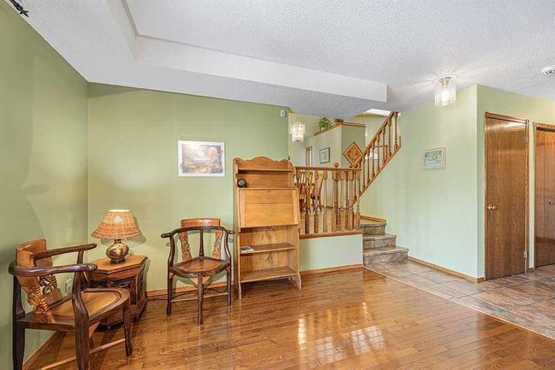 OPEN HOUSE 1-3 pm Saturday & Sunday, September 27th & 28th. Welcome to this beautifully maintained family home tucked away on a quiet street in Lake Sundance. Offering over 2,200 sq. ft. of comfortable living space, this 4-bedroom, 4-bathroom residence combines timeless character with modern updates—plus the bonus of no front sidewalk and a no-grass, low-maintenance yard, meaning less shoveling in winter and more time to enjoy year-round living! Step into the sun-filled, south-facing living room where soaring vaulted ceilings create a bright and airy atmosphere. The spacious eat-in kitchen features abundant cabinetry and quartz countertops, and opens onto a large deck—perfect for summer barbecues and family gatherings (BBQ hookup included). The elegant formal dining room, also with vaulted ceilings and side windows, is ideal for hosting dinner parties. Relax in the cozy sunken family room, complete with wood wainscoting and a granite tile-faced fireplace. A versatile main-floor office (or bedroom) adds flexibility, while a nearby hallway provides washer/dryer hookups, garage access, and a convenient guest bathroom. Gleaming oak hardwood floors flow throughout the main level, adding warmth and sophistication. Up the hardwood staircase, you’ll find a private retreat with three bedrooms and a full family bath. The spacious primary suite features a 4-piece ensuite and walk-in closet, with hardwood flooring extending seamlessly across the upper level. The finished basement offers a versatile, extra-large recreation space—perfect for a games room, theatre, or both. A dedicated laundry room with sink and toilet adds convenience, while a large storage area and handy workbench provide plenty of utility. This poly-b–free home comes with thoughtful modern upgrades, including a high-efficiency furnace, on-demand hot water system, and central vacuum. The insulated garage is equipped with an electrical panel and a 220v plug, plus a Bluetooth-enabled garage door opener for added convenience. Outside, enjoy a massive low-maintenance deck with aluminum railing, complemented by an additional wood patio—ideal for larger gatherings. Two storage sheds and a secure RV parking stall with vinyl fencing complete the package. Live every day like a vacation at Lake Sundance! Residents enjoy private access to a 33-acre lake and 22-acre park with year-round activities—swimming, boating, fishing, skating, and more. With top-rated schools, nearby shopping, Fish Creek Park, and C-Train transit all close by, Sundance offers one of Calgary’s finest lake lifestyles. Take the 3D virtual tour for an in-depth look at this exceptional property!