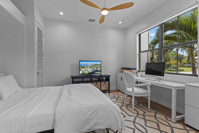 Where modern luxury meets effortless navigation, 1110 Fairview Lane is an unrivaled sanctuary for the yachting lifestyle. A newly built waterfront estate that redefines modern coastal living on Singer Island. Completed in 2022, this 6-bed, 4.5-bath residence encompasses 4,472 sq. ft. under air and 5,700 total sq. ft. of thoughtfully designed living space.Crafted with both elegance and flexibility in mind, the home features two main-floor primary suites, one with its own private kitchenette and lounge area, along with a dedicated office/flex space and a full guest suite above the garage with an ensuite bath. The main living area has soaring 21' ceilings and showcases a custom kitchen, complemented by a hidden scullery kitchen designed for seamless entertaining. Electric shades,
