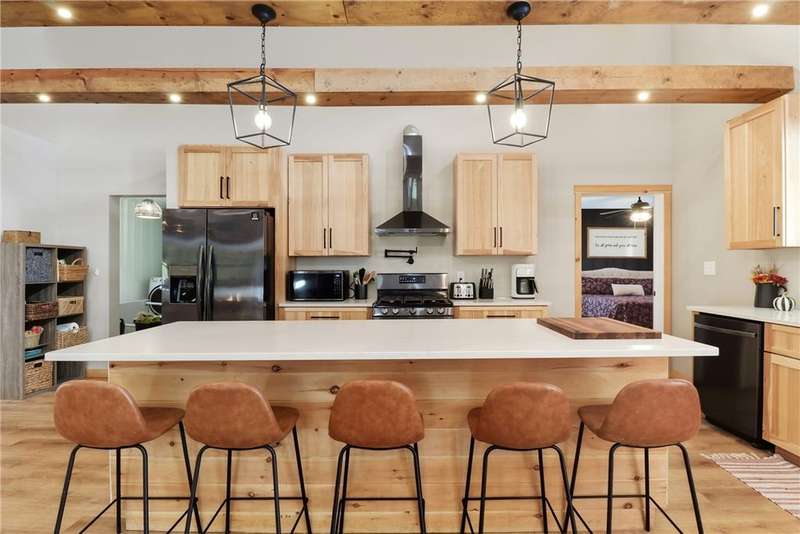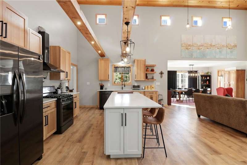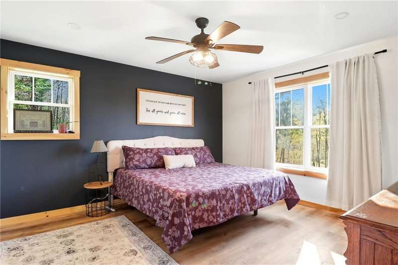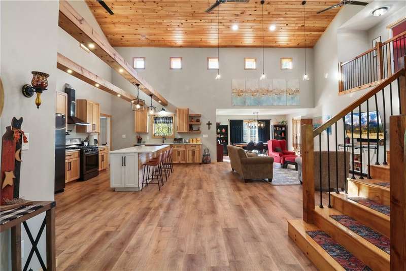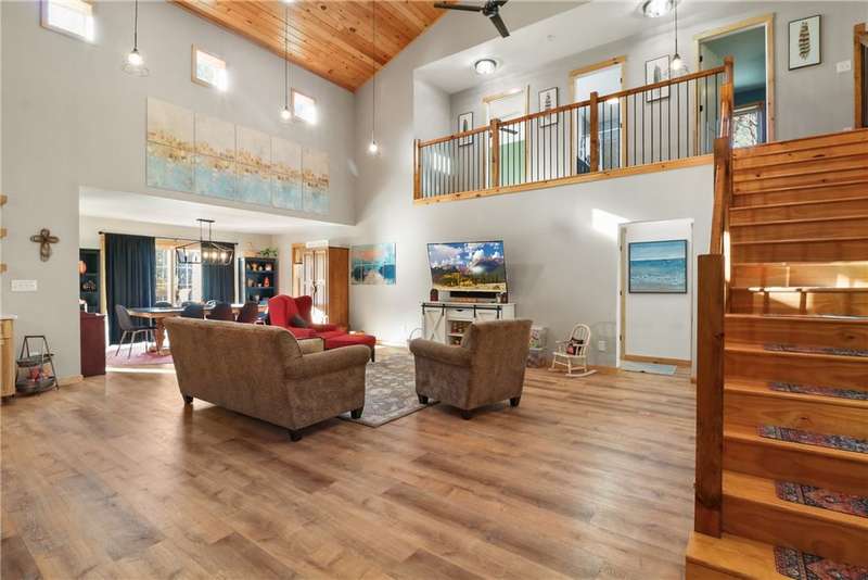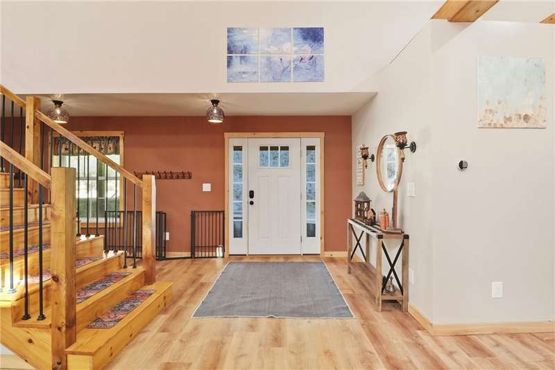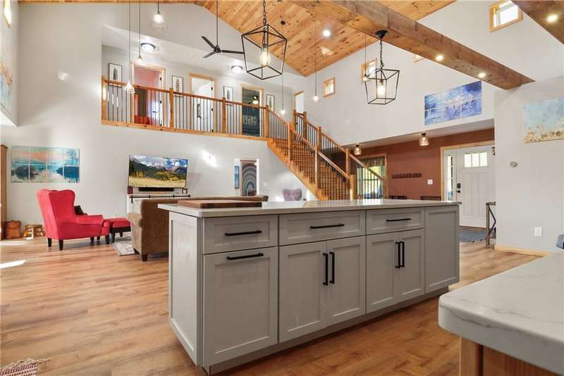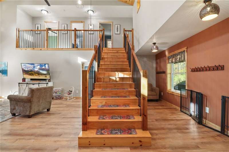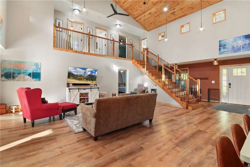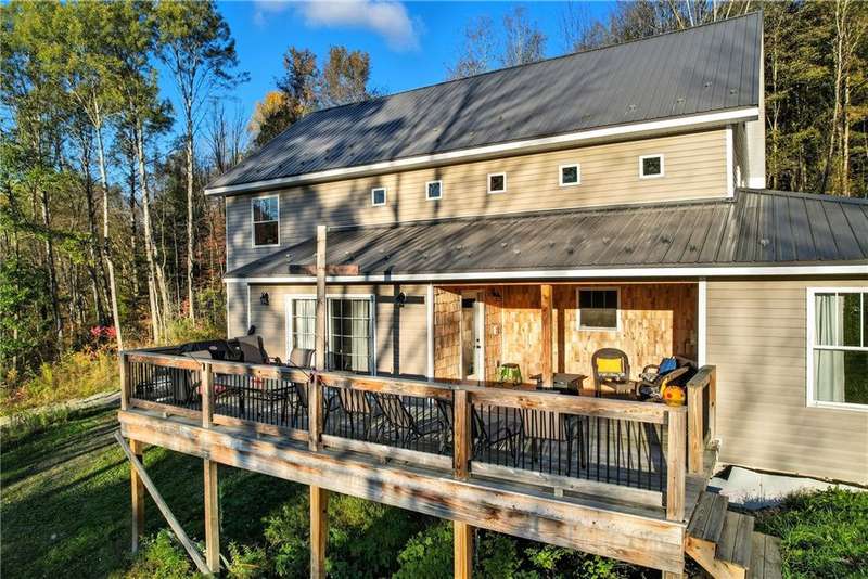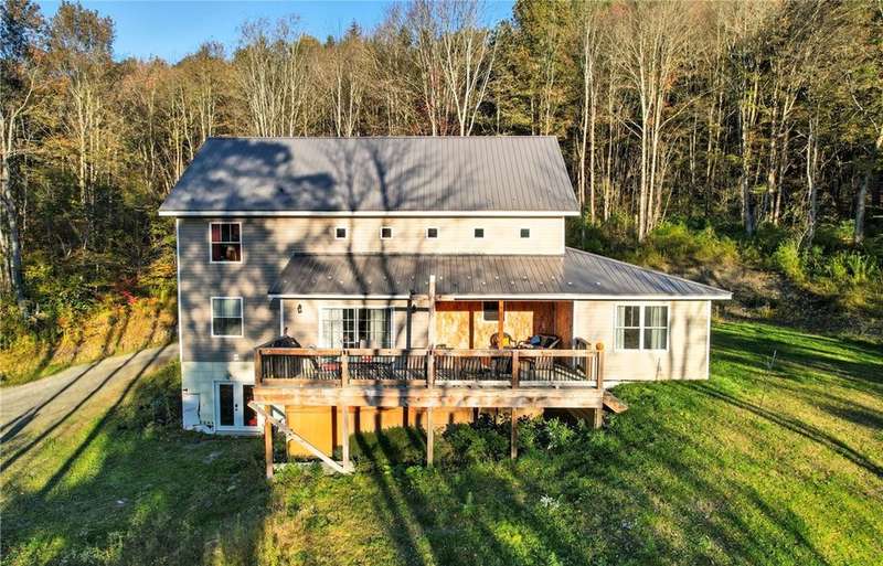Perched on a hill and nestled among nearly 7 private wooded acres, this stunning 2021 custom-built home perfectly blends modern luxury with rustic charm and serene seclusion. With over 4,000 square feet of thoughtfully designed living space (which all include radiant flooring), this 5-bedroom, 3-full bathroom home is built for both everyday comfort and unforgettable entertaining. From the moment you enter, you're greeted with awe-inspiring cathedral ceilings, rugged exposed wood beams, and custom-crafted wood railings that set the tone for the home's warm, yet refined character. At the heart of the home is a spacious kitchen and dining area, seamlessly flowing into the family room?ideal for gatherings of any size. Step outside from the dining room onto a large rear deck, where you can relax or entertain while taking in sweeping hilltop views. The main floor features a luxurious master suite with a spa-inspired bathroom?complete with a soaking tub and separate tiled shower. Two additional bedrooms, a full bath, laundry room, and mud room offer easy main-level living and plenty of storage space. Upstairs, two more bedrooms and a full bath provide a private retreat for guests or family. The fully finished walk-out basement with high ceilings offers an entire level of versatile living. Imagine movie nights in your private theatre, complete with a projector and tiered seating, rec room for play or relaxation, a dedicated office for remote work, and a custom gym with turf flooring to keep your wellness goals on track?all designed with both functionality and comfort in mind. This home offers the perfect balance of peaceful privacy with proximity to nearby communities?including Ithaca, Dryden, Berkshire, and Newark Valley. Whether you're searching for your forever home or a peaceful retreat, this extraordinary property delivers!
