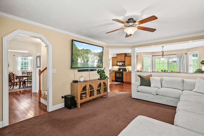 Welcome to this beautifully maintained Colonial offering nearly 2,000 sq ft of comfortable living on a spacious, landscaped lot. Inside discover a bright, open-concept kitchen with hardwood floors, center island, and dining nook that flows seamlessly to a sunny deck—perfect for entertaining. A formal dining room and inviting living room add charm and functionality. Upstairs, the generous primary suite boasts two walk-in closets and a private bath, complemented by two additional bedrooms and another full bath. Modern comforts include an attached two-car garage, walk-up attic for storage, and full basement with interior and garage access. Set on a peaceful .69-acre lot with a paved driveway and room for 8 cars, this home combines privacy with convenience. Enjoy nearby shopping, schools, and walking trails—all while settling into a warm and welcoming neighborhood.