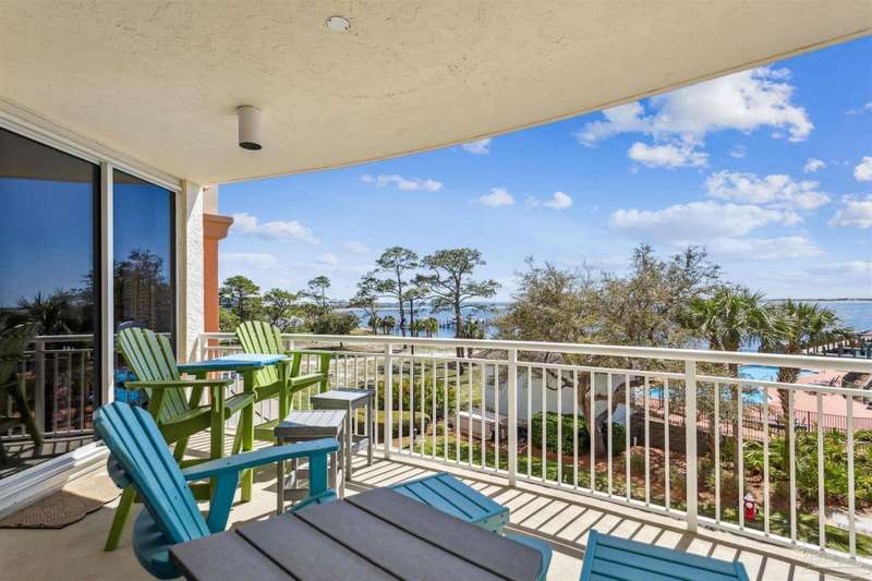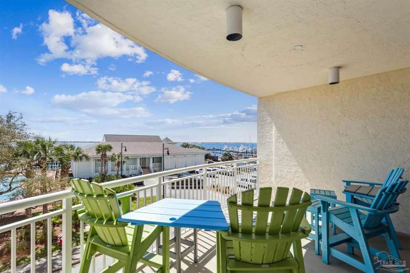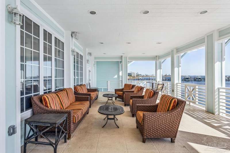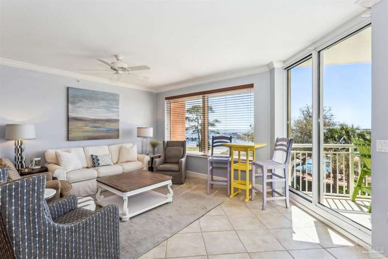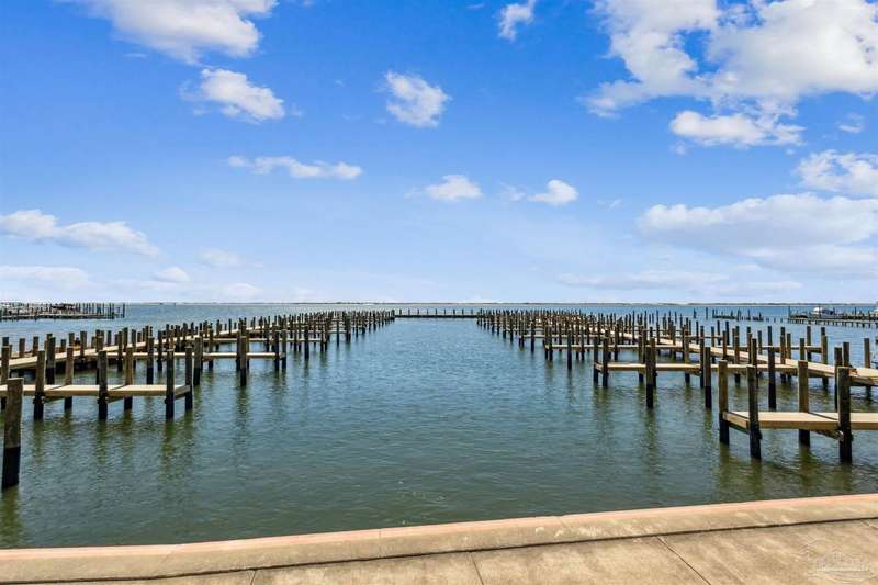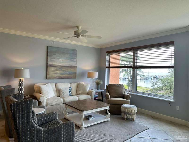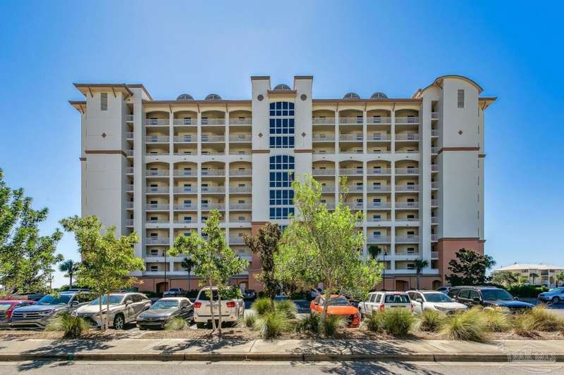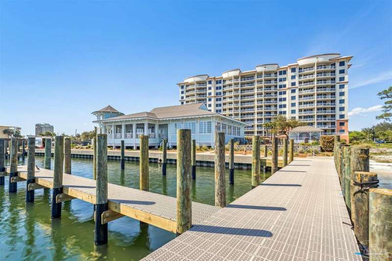 The first thing you see when you walk in this FURNISHED 2 BD/2 BA condo home is the spectacular view of the intracoastal & the Gulf. This rent-restricted (7 month minimum) residence also comes with a deeded parking space in the lot (addt'l guest parking) & climate controlled storage locker. This condo has tile in the foyer, entry hall, kitchen, laundry, bathrooms & living/dining area. There is custom wood cabinetry, granite countertops, and black appliances in the kitchen and has a large living/dining combo with bar seating as well, sliding impact glass doors to allow lots of light with stunning views of the water & access to your covered deck. Your primary bedroom has lots of space, with water views, walk-in closet and another large closet & sliding impact glass door to your balcony. The primary bath has double vanities separated by a jetted tub, a separate walk-in shower, private water closet & tiled floors. The guest bedroom is separate & private with ceiling fans & has a large guest bath with shower/tub combo with tile backsplash, wood cabinetry & tile floors. There is also a laundry closet, and additional interior storage. New Water heater 2025. Air handler 4 yrs old and all serviced. Such a great place to live as a primary residence or a 2nd home that has great amenities with it's waterfront clubhouse, fitness center, indoor & outdoor (covered) gathering areas, a pool, hot tub & gas grills, and a community beach area all for your enjoyment. Plenty of guest parking. There's also SEPERATE dry /wet slips to consider for storing your boat, if available (*marina/slips are a SEPARATE entity from the condo & NOT included with unit!). Conveniently located to the beaches of Perdido Key, Gulf Islands National Seashore, state parks, kids' parks, marinas, golfing, back gate of NAS, restaurants, & shopping. Enjoy the coastal life boating, kayaking, paddle boarding, riding bikes, walking, OR watch the Blue Angels from your balcony! Call TODAY to view!