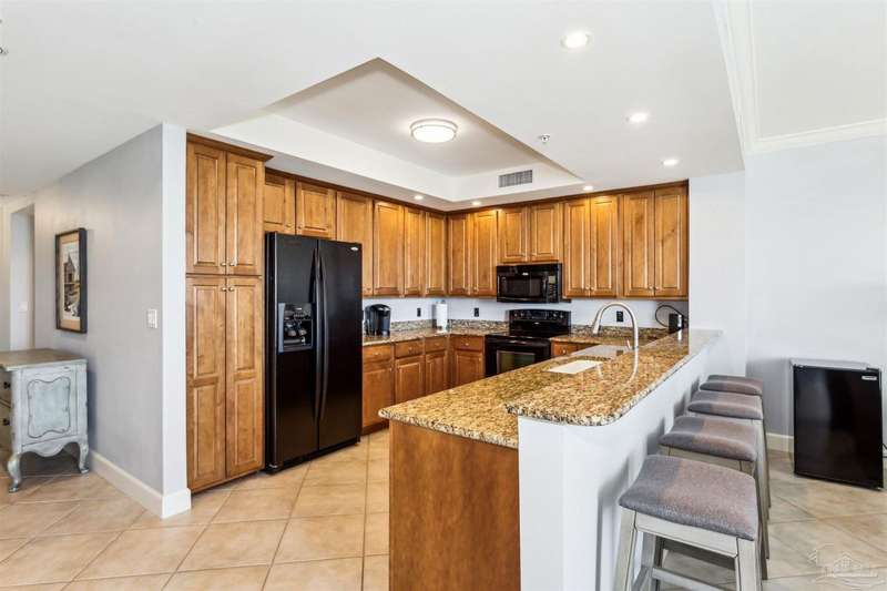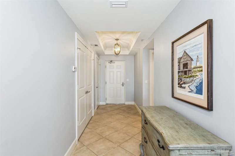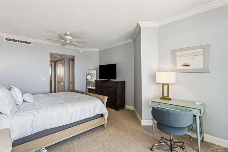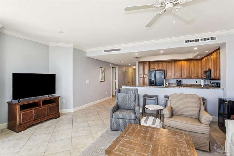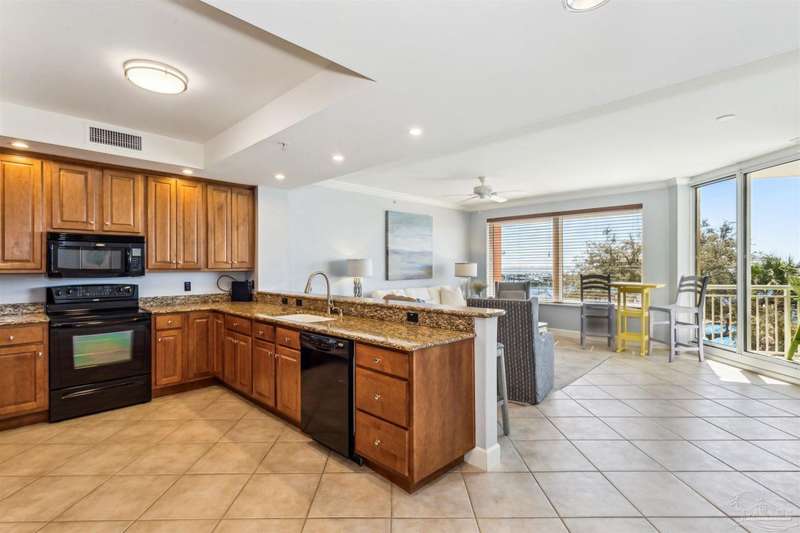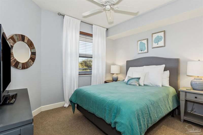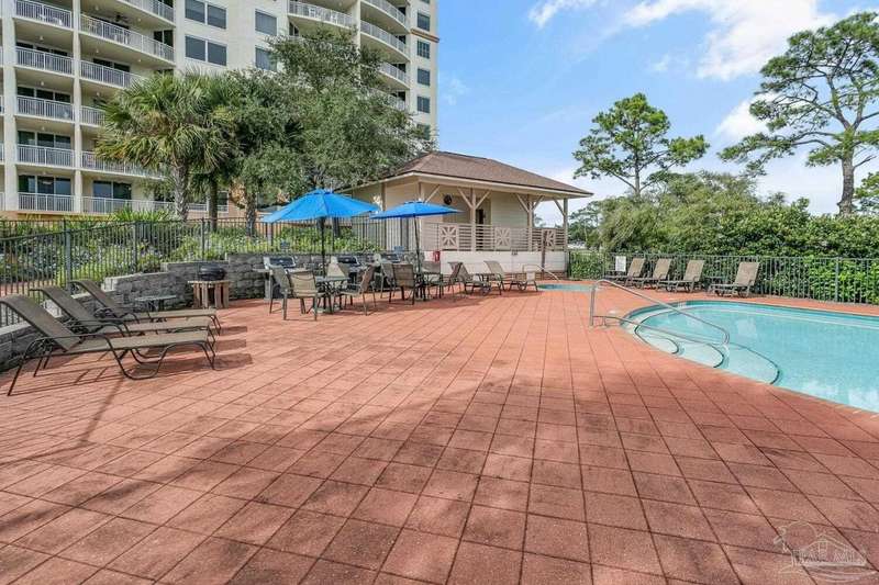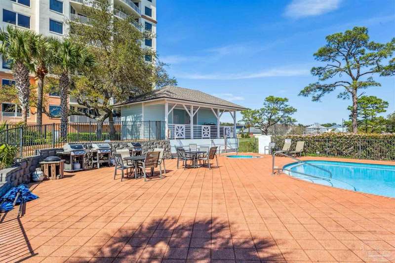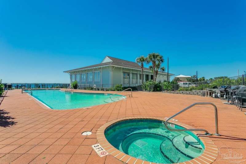 The first thing you see when you walk in this FURNISHED 2 BD/2 BA condo home is the spectacular view of the intracoastal & the Gulf. This rent-restricted (7 month minimum) residence also comes with a deeded parking space in the lot (addt'l guest parking) & climate controlled storage locker. This condo has tile in the foyer, entry hall, kitchen, laundry, bathrooms & living/dining area. There is custom wood cabinetry, granite countertops, and black appliances in the kitchen and has a large living/dining combo with bar seating as well, sliding impact glass doors to allow lots of light with stunning views of the water & access to your covered deck. Your primary bedroom has lots of space, with water views, walk-in closet and another large closet & sliding impact glass door to your balcony. The primary bath has double vanities separated by a jetted tub, a separate walk-in shower, private water closet & tiled floors. The guest bedroom is separate & private with ceiling fans & has a large guest bath with shower/tub combo with tile backsplash, wood cabinetry & tile floors. There is also a laundry closet, and additional interior storage. New Water heater 2025. Air handler 4 yrs old and all serviced. Such a great place to live as a primary residence or a 2nd home that has great amenities with it's waterfront clubhouse, fitness center, indoor & outdoor (covered) gathering areas, a pool, hot tub & gas grills, and a community beach area all for your enjoyment. Plenty of guest parking. There's also SEPERATE dry /wet slips to consider for storing your boat, if available (*marina/slips are a SEPARATE entity from the condo & NOT included with unit!). Conveniently located to the beaches of Perdido Key, Gulf Islands National Seashore, state parks, kids' parks, marinas, golfing, back gate of NAS, restaurants, & shopping. Enjoy the coastal life boating, kayaking, paddle boarding, riding bikes, walking, OR watch the Blue Angels from your balcony! Call TODAY to view!