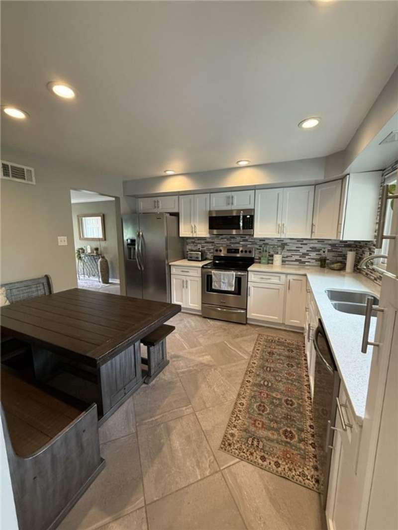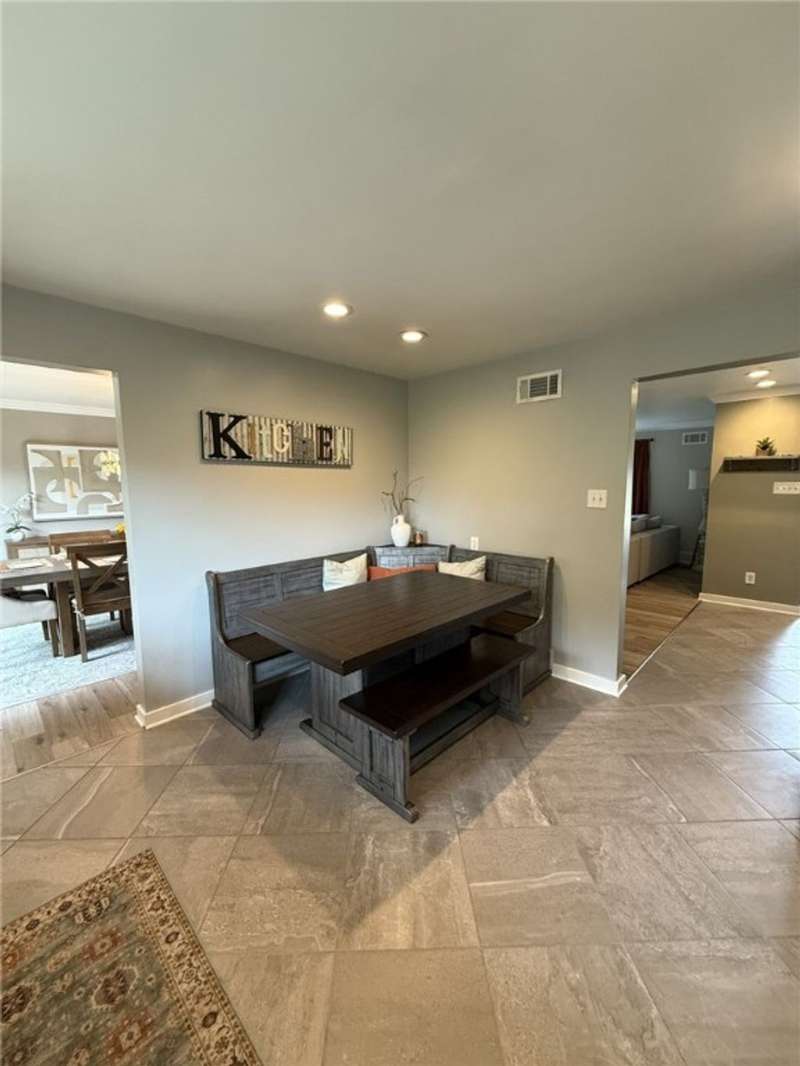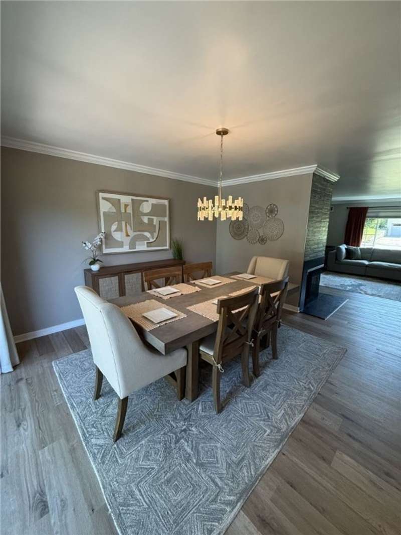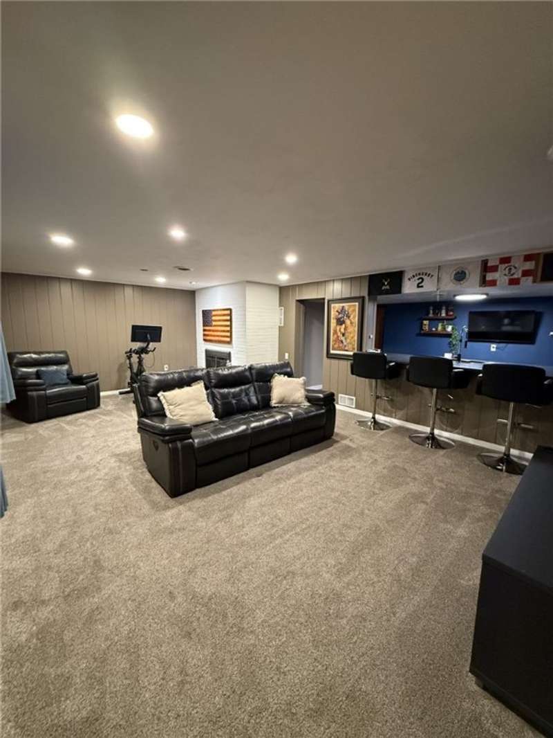 Welcome to this beautifully updated 3 bedroom, 2 1/2 bath brick ranch that features an inviting open-concept layout set on a desirable corner lot. The spacious living area flows seamlessly into the updated kitchen, complete with modern finishes, ample counter space, and plenty of storage. All bathrooms have been tastefully updated offering a clean refreshed feeling throughout. This home features all new luxury vinyl plank flooring that adds durability and style, while new carpeting brings warmth and comfort to the bedrooms. Step outside of the dining room to a new deck, ideal for relaxing or entertaining. The finished basement offers a complete living space highlighted by an updated wet bar. Cozy up with not one but two gas fireplaces, including a stunning dual-sided fireplace that adds warmth and charm to multiple living areas. With thoughtful upgrades and plenty of space, this move-in-ready ranch is the perfect place to call home!
