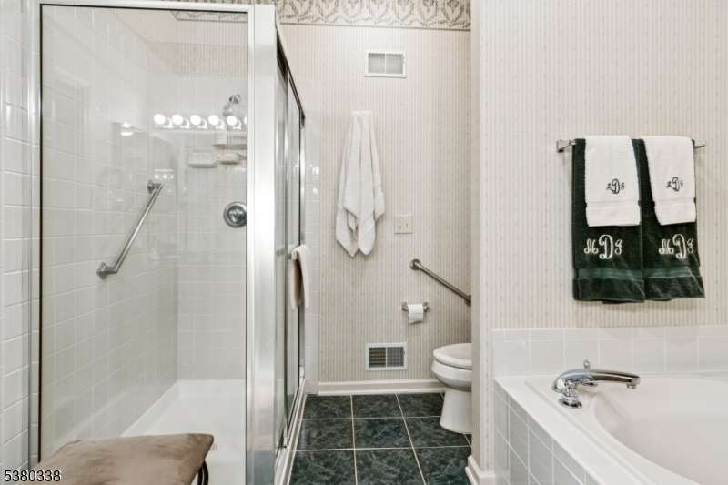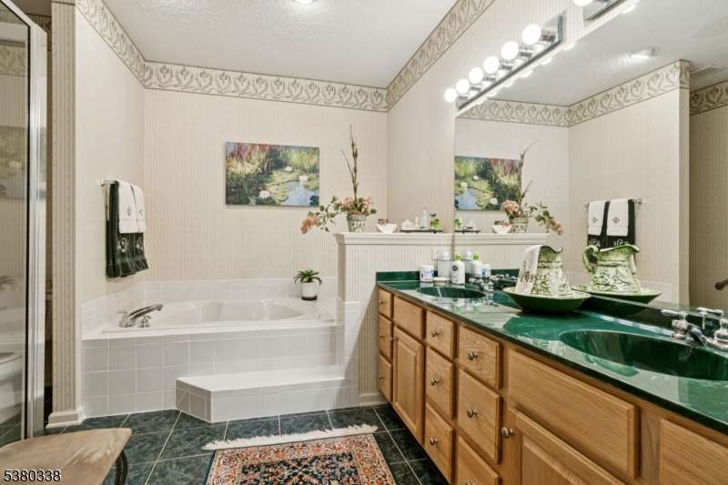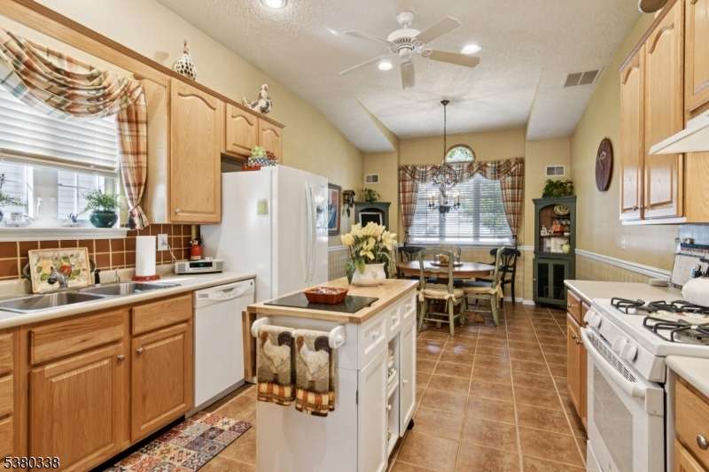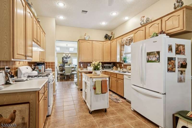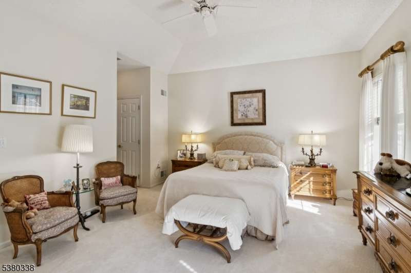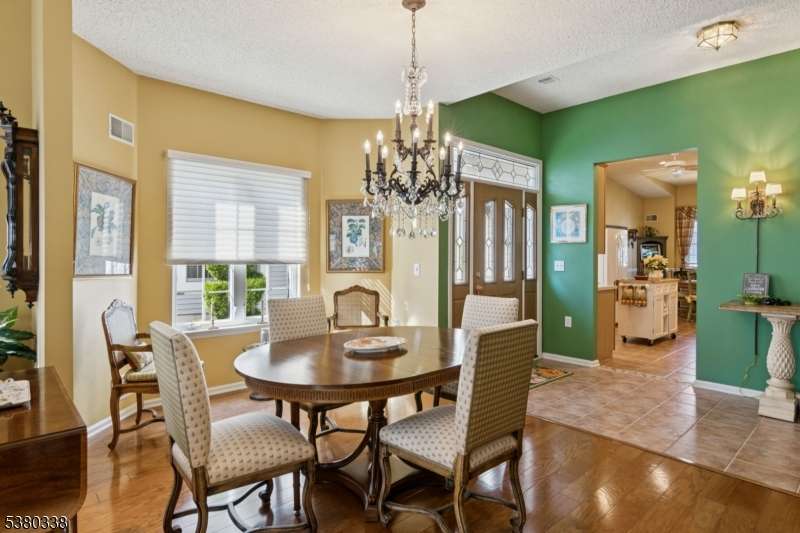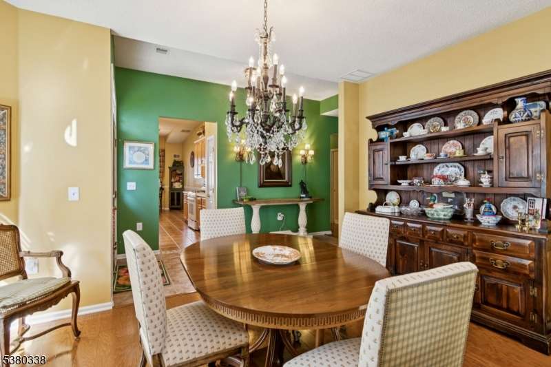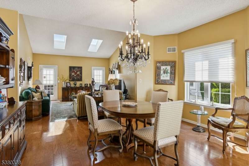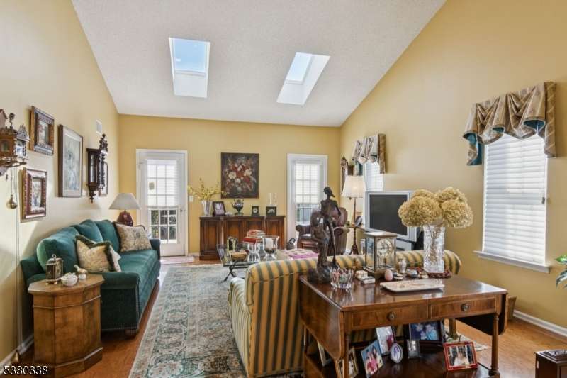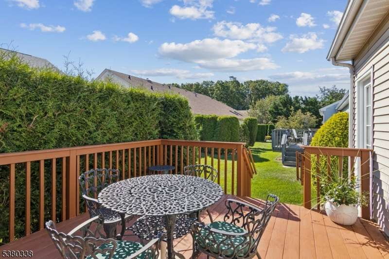 A stunning and immaculate Essex model ranch is now available in Greenbriar at Whittingham. New garage door, newer roof, central AC and hot water heater, newer carpeting in the bedrooms. Interior designed custom paint, spectacular wood floors, skylights in the living room, huge eat in- kitchen, outdoor deck, gorgeous light fixtures included, custom window shades and window treatments, built-ins. Huge primary bedroom with wic, en suite, soaking tub, dual sink vanity, and separate shower stall with safety rails. Gas cooking. Great curb appeal, Harwood is one of the widest streets in the neighborhood. Plenty of parking, attic space in the garage. Resort style amenities include indoor and outdoor pool, golf, pickleball, clubs, clubhouse, fitness center, and trips galore. Hurry before it's gone, nothing to do but unpack, schedule an appointment today. Multiple offers received. Highest and Best due 9/1 at 8PM