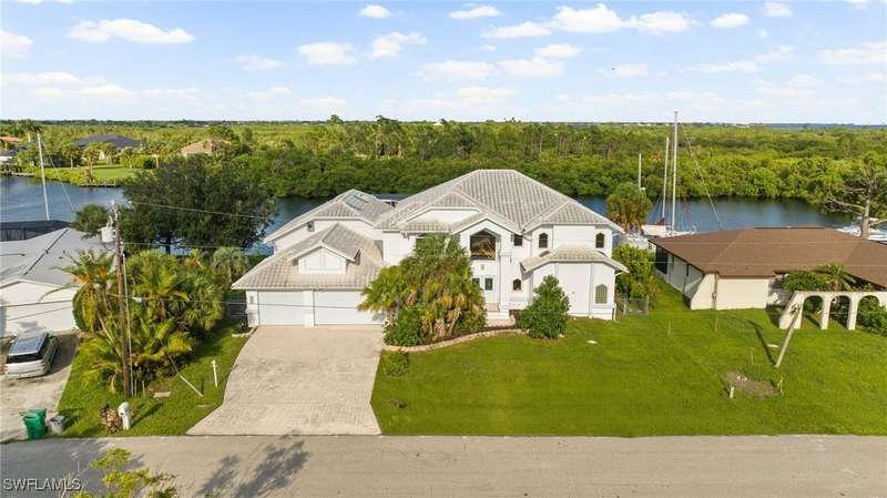 Updated SAILBOAT ACCESS! Indulge in the pinnacle of waterfront living in this unique Pool Home. Within minutes of Charlotte Harbor and with direct access to the Gulf, this location is ideal for larger boats or yachts. Large 80-foot DOCK equipped for multiple boats. Designed with elegance, a grand wooden spiral staircase awaits you as you enter into almost 4,000 SQ. FT. of inviting living space. Looking for that wow factor? An expansive open floor plan, bathed in natural light leads you into the gourmet kitchen, where sleek countertops, high-end cabinetry and top-of-the-line appliances create a chef's paradise, perfect for both intimate dinners and entertaining. Whether you're hosting a gathering or enjoying a quiet evening by the water, a lifestyle of unparalleled luxury and tranquility awaits you. New porcelain tile throughout the Home. The fully renovated downstairs master bathroom now boasts a custom shower, soaking tub, dual sinks & upgraded lighting. Updated downstairs bath and fully remodeled upstairs guest bathroom with modern shower, exquisite tile features, new flooring and vanity. Oversized 3-car garage, room for multiple vehicles and ample space for storage. Underground utilities. Whole house Generator, two electric water heaters, propane powered cooktop and multiple AC units. Refreshed landscaping with lush greenery, exotic florals and rock features. Known as one of the largest natural harbors in Florida, Port Charlotte is a boater's paradise, where the open water awaits you. Cruise to many of the beautiful beaches and waterfront destinations Southwest Florida has to enjoy. A short drive to dining, shopping and local amenities. Located between Sarasota and Fort Myers, with easy access to both cities via US-41 and I-75. If you are dreaming of a new waterfront Home, a vacation property or investment in Paradise, this truly unique Home is an excellent choice! *Several photos have been virtually staged.