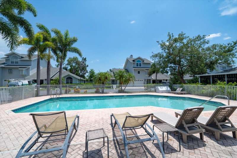 This charming 2-bedroom, 2-bath, PET FRIENDLY villa offers comfortable and spacious living, ideally situated in a NON-FLOOD ZONE, just 1.5 miles to the beautiful sands of Indian Rocks Beach. Upon entering, you'll immediately appreciate the vaulted ceilings that enhance the sense of openness and airiness throughout the main living areas. The split floor plan ensures privacy, with the master suite thoughtfully separated from the second bedroom. The master bedroom is a true retreat, featuring an en suite bathroom designed for relaxation; It boasts a generous walk-in closet, a separate shower, and a large soaking tub, perfect for unwinding after a long day. The second bedroom is well-proportioned and conveniently located near the second full bathroom. For your comfort and peace of mind, this STUNNING villa is equipped with a NEW HVAC system (7/25), FRESH PAINT (1/25) and a newer ROOF (2018) adding not only comfort and convenience, but also true peace of mind! Adding to the living area is a large sun room with abundant natural light shining through the solid wood shutters; This bonus room offers versatile space that can be used as a den, office, or an additional lounging area. Parking and storage are ample with an oversized one-car garage, providing extra space beyond just parking. Residents of this community will also enjoy access to a community pool, providing a refreshing escape and a social gathering spot. With its desirable features, proximity to the beach, and location in a non-flood zone, this villa presents an excellent opportunity for coastal living.