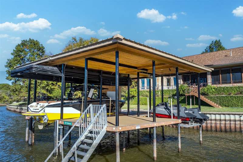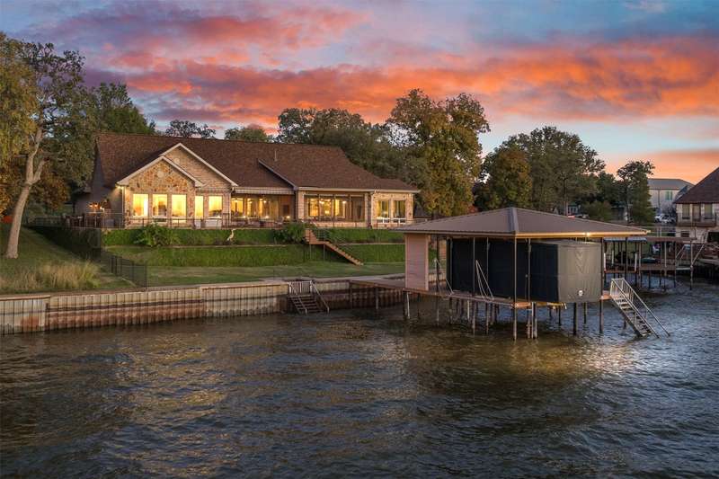**Luxurious Lakefront Living at Pinnacle Golf Club** Welcome to your dream home at Pinnacle Golf Club, the premier golf club community on the shores of Cedar Creek Lake-- this breathtaking 4-bedroom, 3.1-bathroom retreat impeccably blends modern design with unparalleled comfort. Constructed with a durable steel frame, this home is a testament to quality and endurance. The heart of the home features an inviting open living concept where the living room, kitchen, and dining space seamlessly unite, all framed by the serene backdrop of the lake. The primary bedroom, adjoining this main gathering area, offers a tranquil sanctuary overlooking the water. The three car garage offers a unique elevator that provides access to tons of attic storage, with possibilities to be finished for additional space. A see-through fireplace connects the main living area to a second living space configured as a game room complete with a full bar. Three additional bedrooms, including darling custom modern bunk room, branch off from the game room. The screen porch extends the home's living space outdoors and the patio has a retractable awning and cozy outdoor fire pit overlooking the cove, ideal for swimming. Boating enthusiasts will revel in the newly constructed boathouse, completed in early 2024, perfectly positioned for easy and direct access to the water, which is as pretty as it is functional with wood ceiling, recessed lighting and full spider control system, metal roof, and two PWC lifts. Come see for yourself and make this extraordinary property your forever home. Ask agent for more info!One year social membership to Pinnacle Club included with purchase. Buyer responsible for HOA fee of .002% of sales price at closing. Club offers restaurant and clubhouse, access to our 24 hour fitness center, enjoyment of the junior olympic size swimming pool, use of the tennis courts, and attendance to a wide variety of special member events.