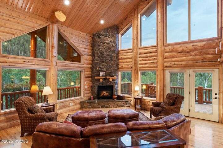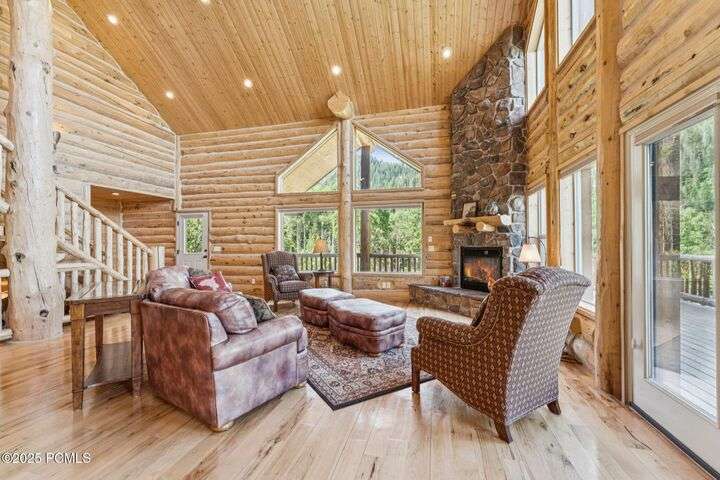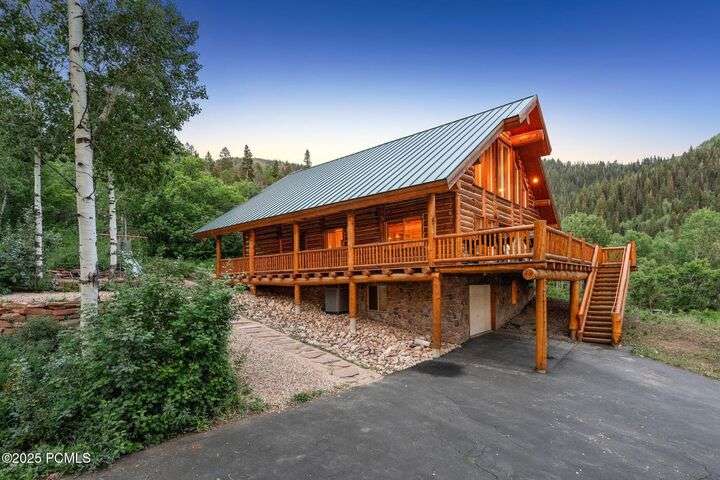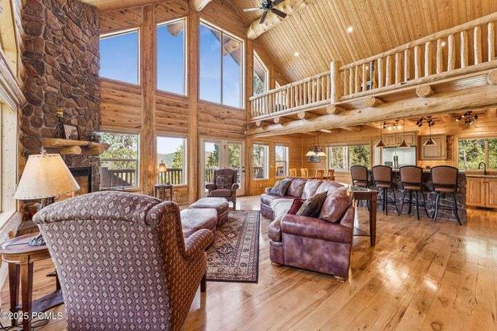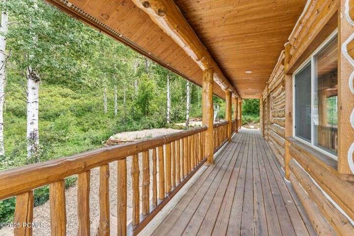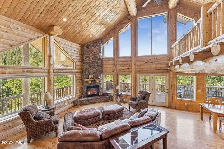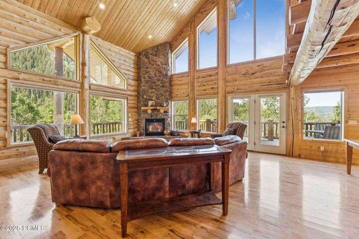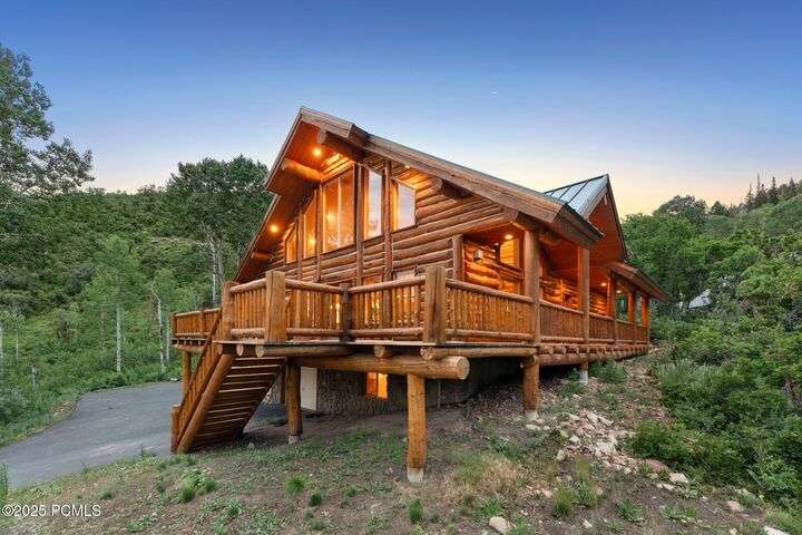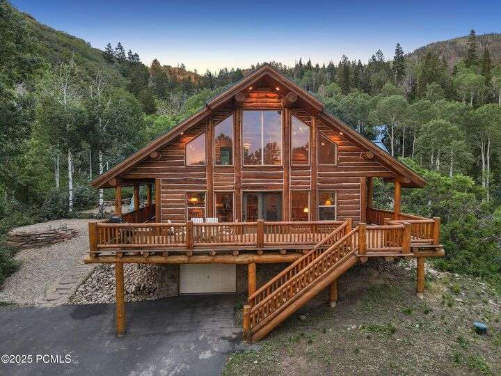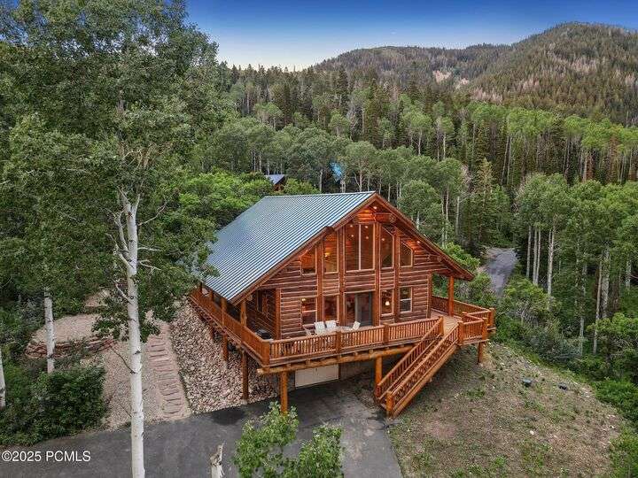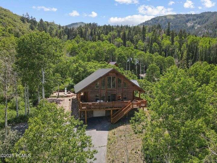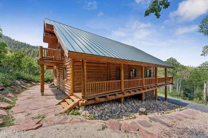 Discover your private mountain sanctuary atop Pine Mountain, where luxury meets wilderness in this extraordinary 4,182-square-foot craftsman log cabin. This stunning 5-bedroom, 3-bathroom retreat sits majestically on 0.81 acres overlooking the Weber Canyon, complemented by an additional 2.25-acre buildable lotoffering endless possibilities to build another cabin or maintain ultimate privacy.Built in 2004, this architectural marvel showcases the artistry of hand-cut logs and custom log supports that create an atmosphere of refined rustic elegance. Soaring ceilings throughout blend seamlessly with rich wood finishes, striking the perfect balance between modern comfort and authentic mountain charm.The thoughtfully designed layout maximizes both space and views across three levels. The basement level provides an inviting living space with two comfortable bedrooms and a full bathroom, while the main level features a spectacular open-concept design with two additional bedrooms, an updated kitchen, and the home's crowning jewela floor-to-ceiling stone fireplace that commands attention and creates the perfect gathering space. The upper level offers a private loft retreat and luxurious primary suite complete with a spa-like bathroom featuring a jetted tub, elegant tile shower, and exclusive private deck access.The expansive front deck serves as your personal theater for nature's nightly show, offering sweeping views down Weber Canyon and unrivaled sunset vistas to the west. Additional covered side decks extend your living space outdoors, perfect for morning coffee or evening relaxation. Practical amenities include an attached single-car garage plus abundant additional parking for guests and recreational vehicles.Located in the highly coveted Pine Mountain area of Weber Canyon, residents enjoy paved road access for convenience while maintaining seasonal accessibility that preserves the area's pristine, secluded character. The community offers direct nationa