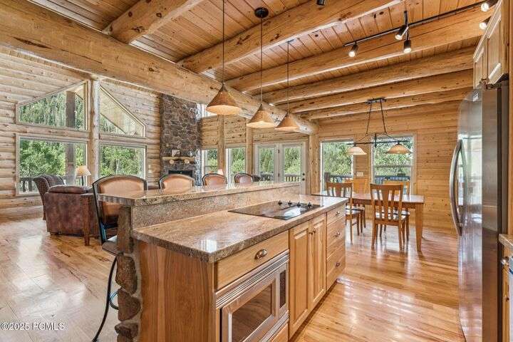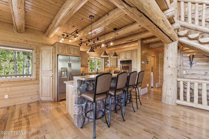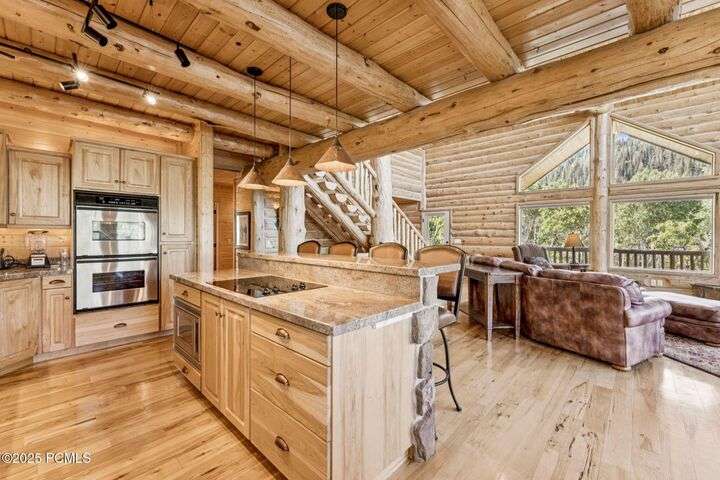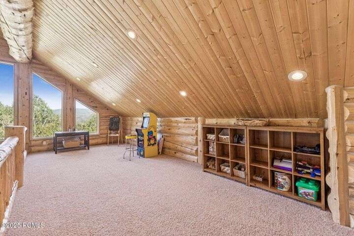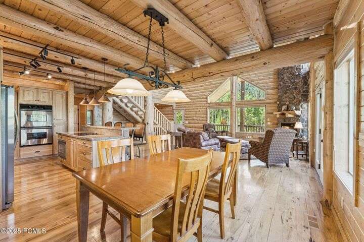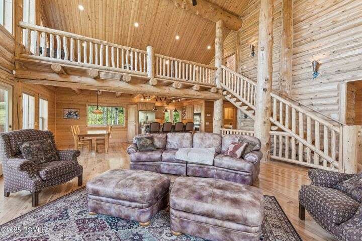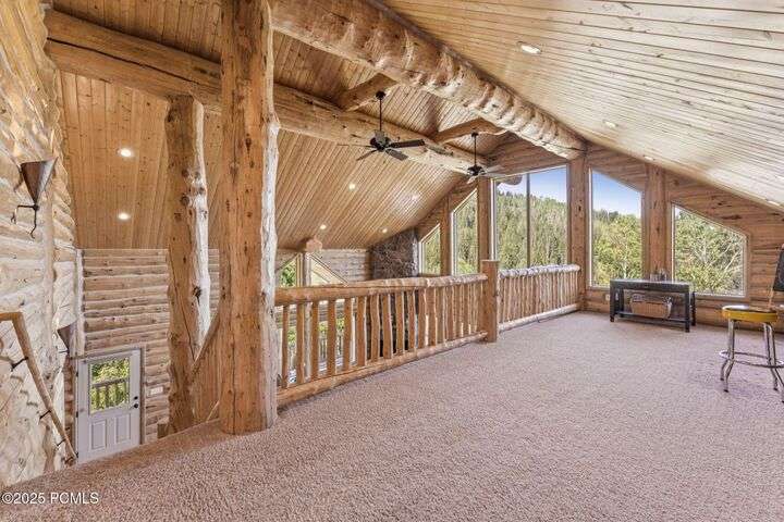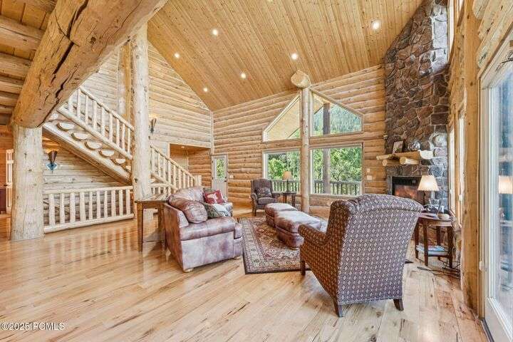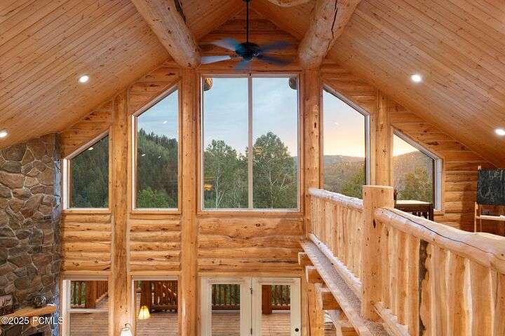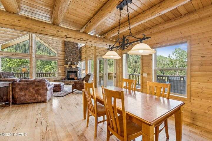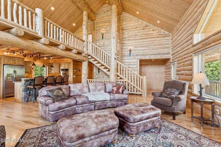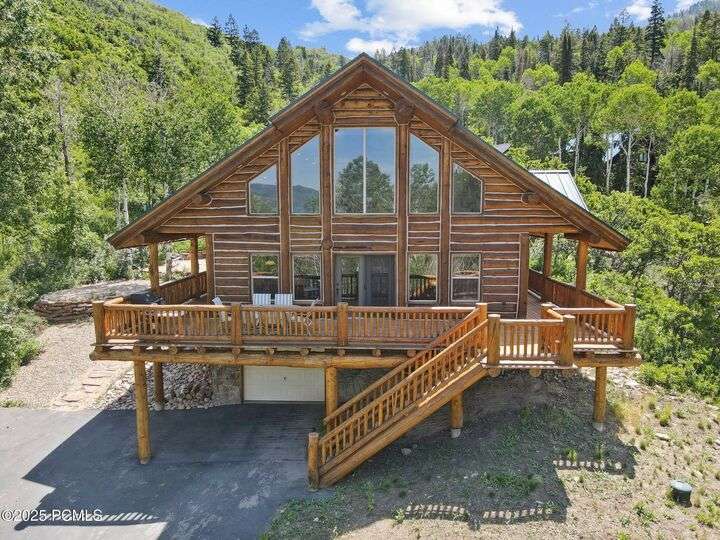 Discover your private mountain sanctuary atop Pine Mountain, where luxury meets wilderness in this extraordinary 4,182-square-foot craftsman log cabin. This stunning 5-bedroom, 3-bathroom retreat sits majestically on 0.81 acres overlooking the Weber Canyon, complemented by an additional 2.25-acre buildable lotoffering endless possibilities to build another cabin or maintain ultimate privacy.Built in 2004, this architectural marvel showcases the artistry of hand-cut logs and custom log supports that create an atmosphere of refined rustic elegance. Soaring ceilings throughout blend seamlessly with rich wood finishes, striking the perfect balance between modern comfort and authentic mountain charm.The thoughtfully designed layout maximizes both space and views across three levels. The basement level provides an inviting living space with two comfortable bedrooms and a full bathroom, while the main level features a spectacular open-concept design with two additional bedrooms, an updated kitchen, and the home's crowning jewela floor-to-ceiling stone fireplace that commands attention and creates the perfect gathering space. The upper level offers a private loft retreat and luxurious primary suite complete with a spa-like bathroom featuring a jetted tub, elegant tile shower, and exclusive private deck access.The expansive front deck serves as your personal theater for nature's nightly show, offering sweeping views down Weber Canyon and unrivaled sunset vistas to the west. Additional covered side decks extend your living space outdoors, perfect for morning coffee or evening relaxation. Practical amenities include an attached single-car garage plus abundant additional parking for guests and recreational vehicles.Located in the highly coveted Pine Mountain area of Weber Canyon, residents enjoy paved road access for convenience while maintaining seasonal accessibility that preserves the area's pristine, secluded character. The community offers direct nationa