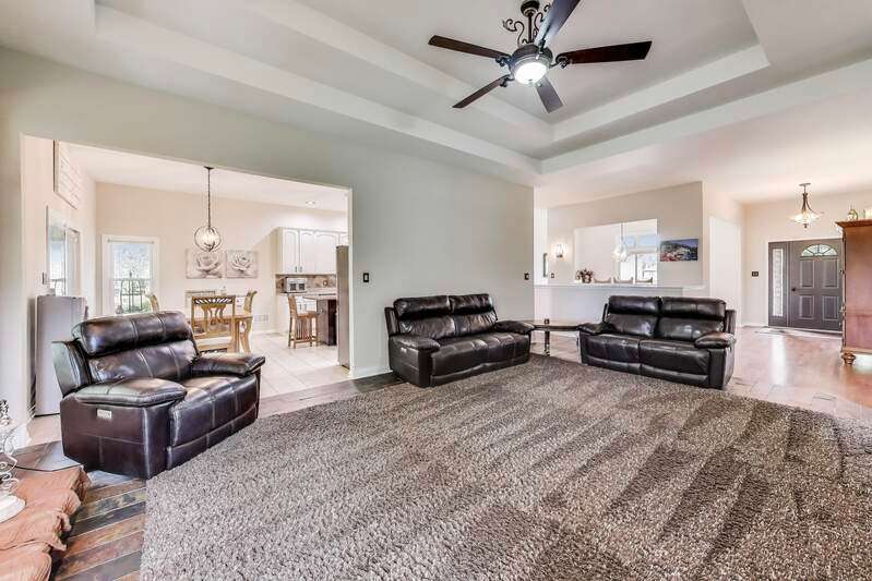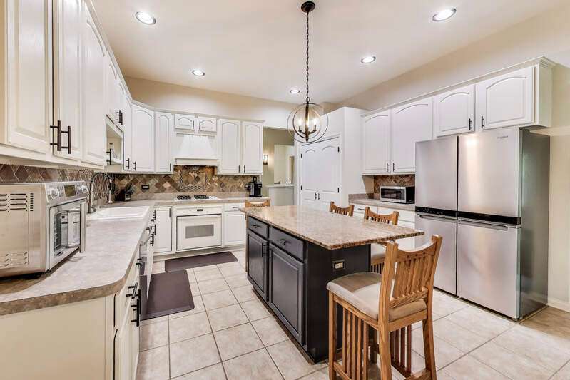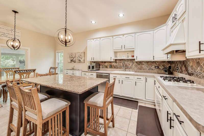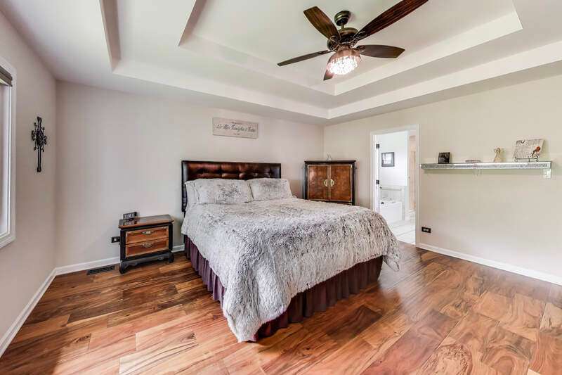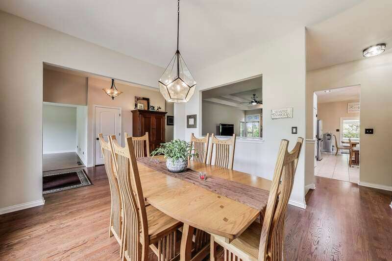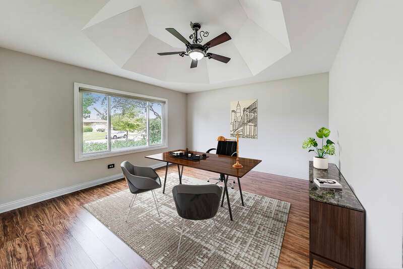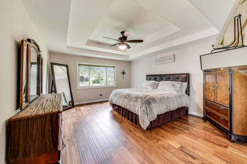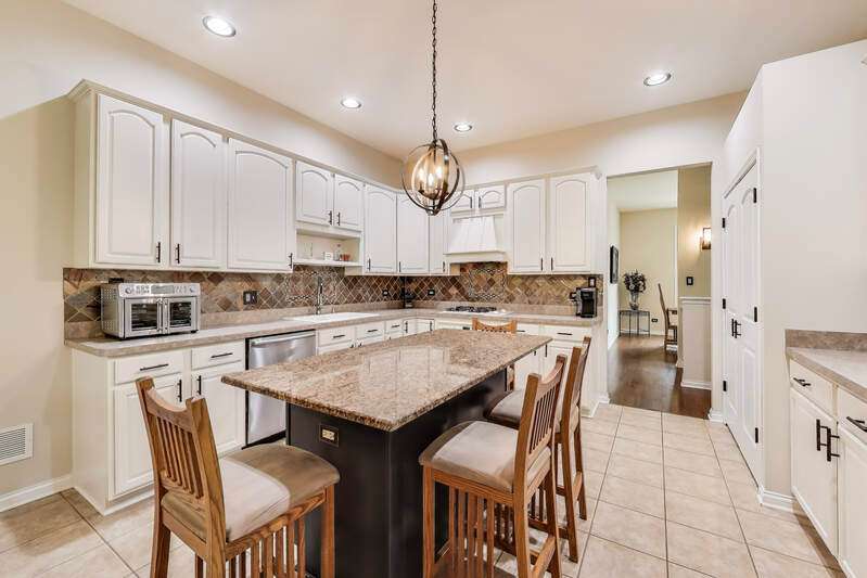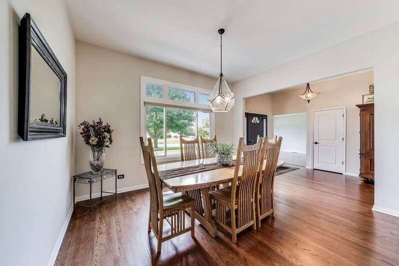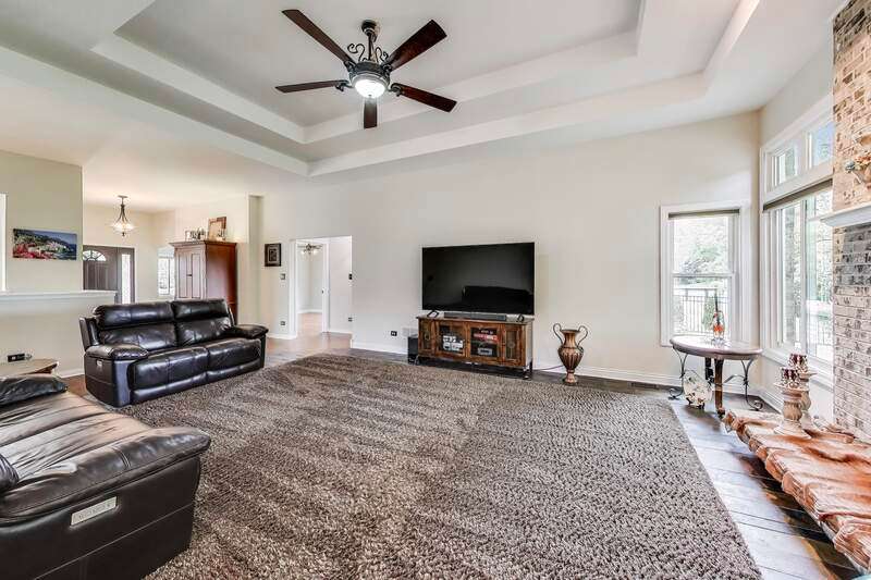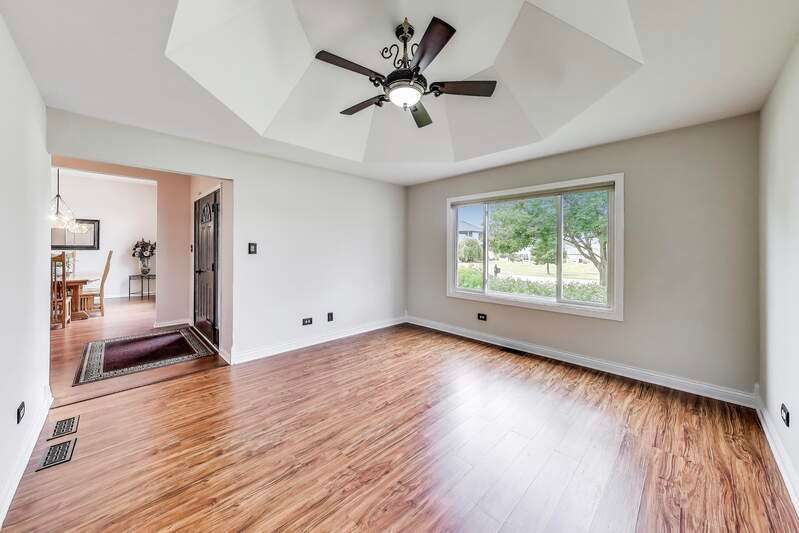 Welcome to 21973 Rosemary Road - a beautifully updated and custom-built ranch located in the highly sought-after Sandalwood Estates of Frankfort. This 3-bedroom, 2 bathroom home offers the perfect combination of timeless design, modern updates, and thoughtful functionality. From the moment you enter, you'll notice the refinished hardwood floors (2023), new light fixtures, and elegant architectural details including tray and vaulted ceilings and a striking brick fireplace. The living room features a two dramatic 4-panel window's that floods the space with natural light, while the formal dining room is ideal for gatherings with its tray ceiling and oversized windows. The kitchen has been refreshed with refinished cabinetry (2023), granite countertop on island, raised panel cabinets, recessed lighting, a large pantry, and a spacious eating area that opens to the beautifully landscaped backyard with salt-water hot tub. Step outside through the glass sliding doors to a professionally manicured yard featuring an oversized concrete patio, shaded verandah overhang, and in-ground sprinkler system-perfect for outdoor living. The adjacent family room offers a tray ceiling, large open area, making it the perfect space to relax or entertain. The primary suite is a true retreat with a tray ceiling, a newly finished walk-in closet with built-in shelving, and a fully updated en-suite bathroom complete with new vanity, mirror, light fixture, custom glass shower door, and whirlpool tub under a large skylight. Both 2nd and 3rd bedrooms include large closets, large windows, and ceiling fans. Office/4th bedroom is a great flex space. The refreshed hallway full bath features a new glass tub/shower door, vanity, mirror, light fixture, and toilet. A main-floor laundry room offers oversized ceramic tile, oak cabinets, and a utility sink for convenience. The basement includes above-grade windows, a concrete crawl space for ample storage, and brand-new carpet on the stairs. Additional highlights include a 3-car attached garage with a service door to the yard (garage refrigerator not included), water softener, and a long list of major updates: new refrigerator and water heater (2024), sump pump (2022), furnace, A/C, and dishwasher (2020), new windows with a lifetime transferable warranty (2018), and a new roof (2017). Situated in award-winning School District 157C and Lincoln-Way East High School (210), and within walking distance to parks, schools, and shopping, this exceptional home offers quality, space, and value in one of Frankfort's most desirable neighborhoods. Don't miss your opportunity to make this move-in-ready home your own!