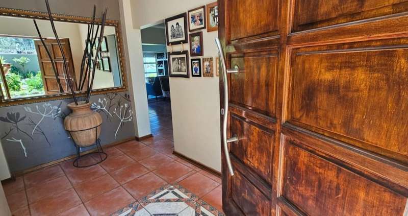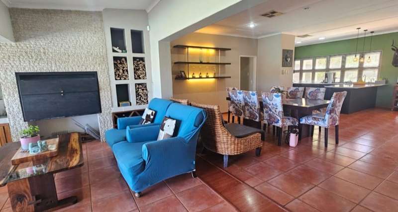 Enjoy luxury living in this stunning 3-bedroom, 2-bathroom river view home, perfectly blending open-plan design with cutting-edge convenience. Ideal for families or professionals working from home, this property offers spaciousness, flexibility, and impressive sustainability features. Inside, the home boasts: Open-plan kitchen with modern finishes, separate scullery, and ample storage Two expansive living areas, ideal for relaxation and entertaining Built-in indoor braai (barbecue) for year-round enjoyment Water cooler system ensuring indoor climate comfort Advanced water purification system for clean, safe water throughout Two indoor storerooms, plus a large office and a dedicated study space Security system with alarms for peace of mind Outside, the property continues to impress: Four garages, including three with automated doors Two external storerooms, plus a toilet for convenience Roofed entertainment area perfect for gatherings Sparkling pool with adjacent computerized irrigation system for the garden Electric gate motor for secure, easy access JoJo tank with pump for water storage and pressure control Eco-conscious and future-ready, this home is powered by a 14KW solar system with a 9KW inverter, 8 installed panels and infrastructure for 8 additional panels—ideal for off-grid capability and energy efficiency. This is more than just a home—it's a lifestyle upgrade with breathtaking views, thoughtful design, and all the extras already in place. Call to arrange for a viewing
