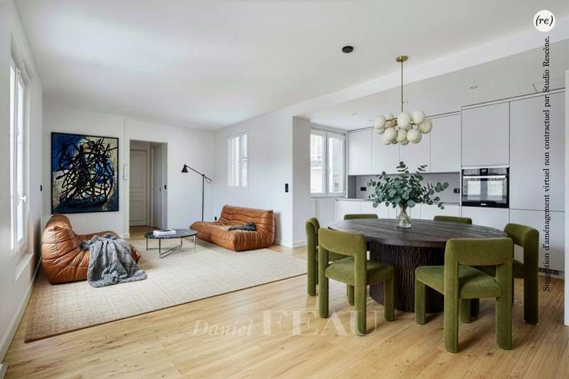 Rue Fabert, Invalides neighbourhood. This meticulously renovated 76 sqm apartment on the 4th floor of an elegant mid 19th century building is fully east-facing and overlooks a leafy courtyard. It includes a spacious living/reception room, an equipped open-plan kitchen, a master suite with a shower room and dressing room, and two further bedrooms each with a shower room. With a cellar.