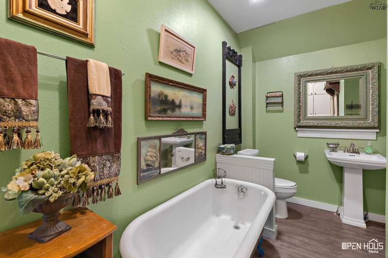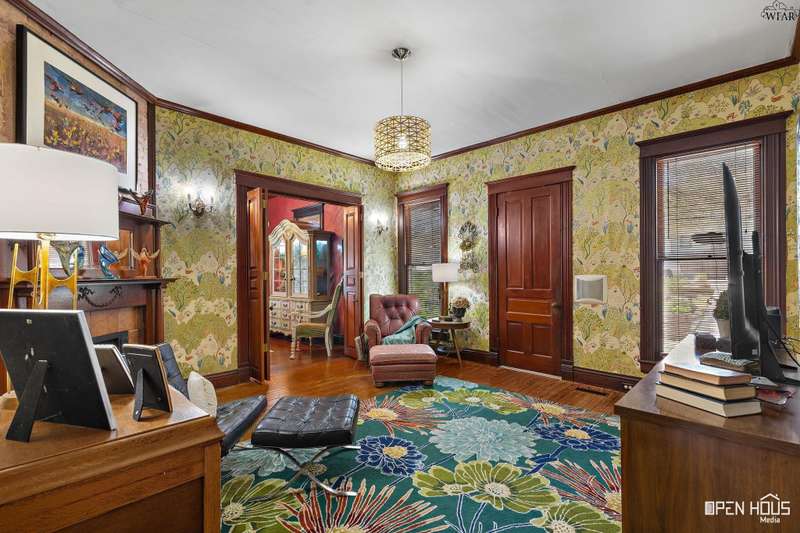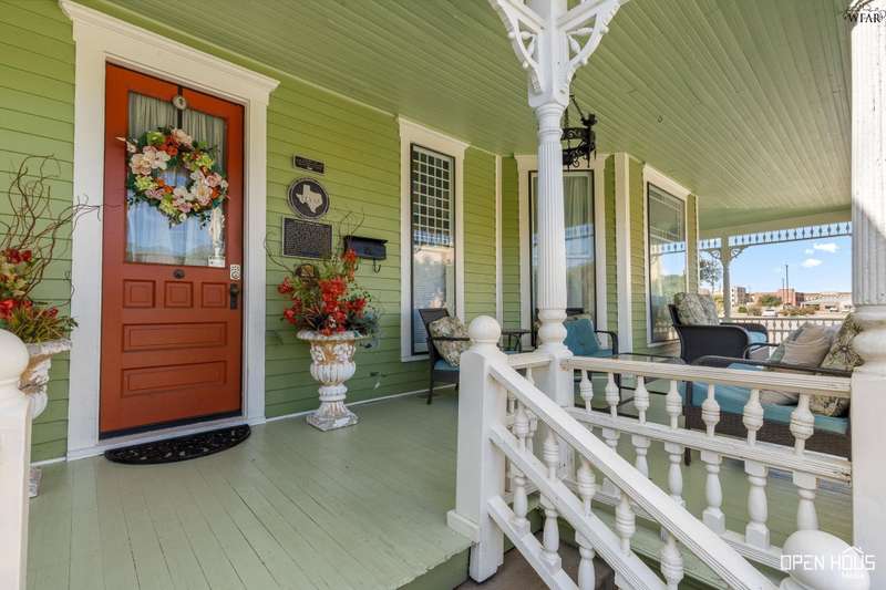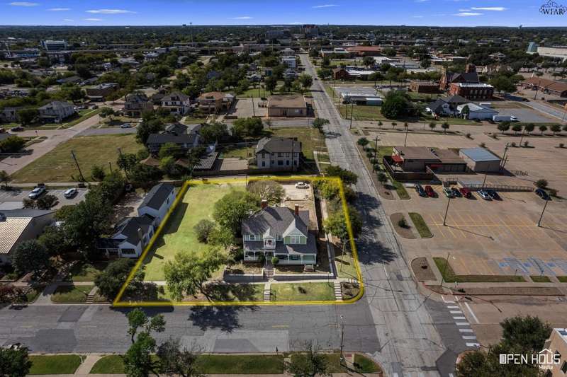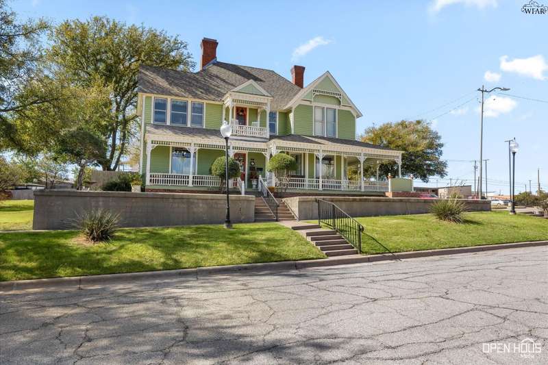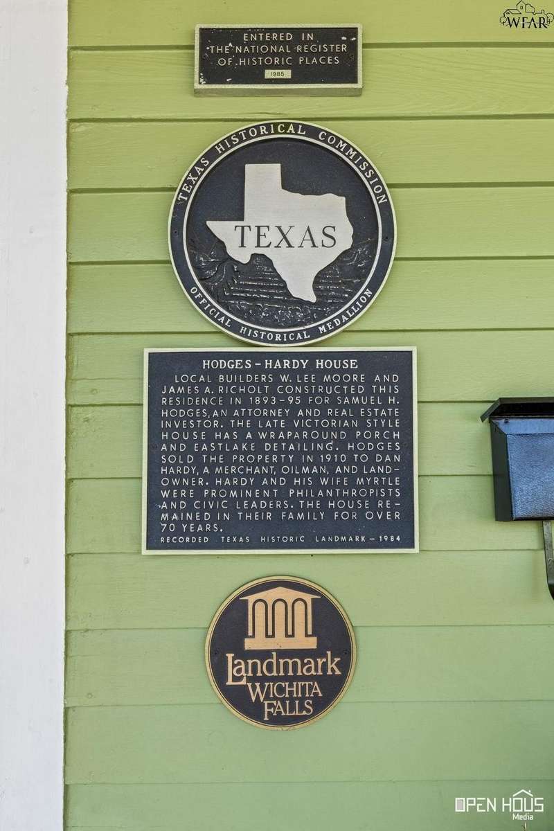 Current owner uses as residence. Formerly graphic design studio and retail and antique shop. Said to be oldest home in Wichita Falls (1891). Grand 2 story structure with tremendous car and rehabilitation. Wood floors. 6 fireplaces (mock). Historical designations from City of WF, State of Texas, and U.S. Recent comp. roof, central HVAC (electrical). A classic structure with a storied history. Could be commercial use also.