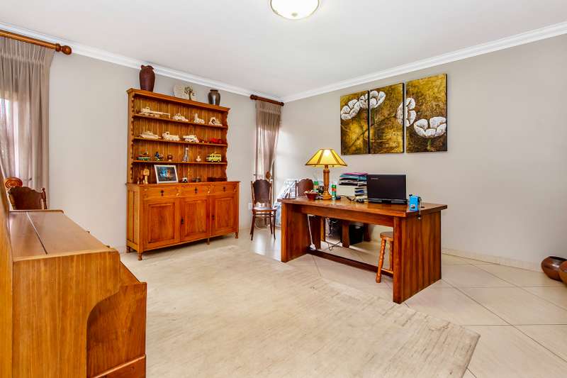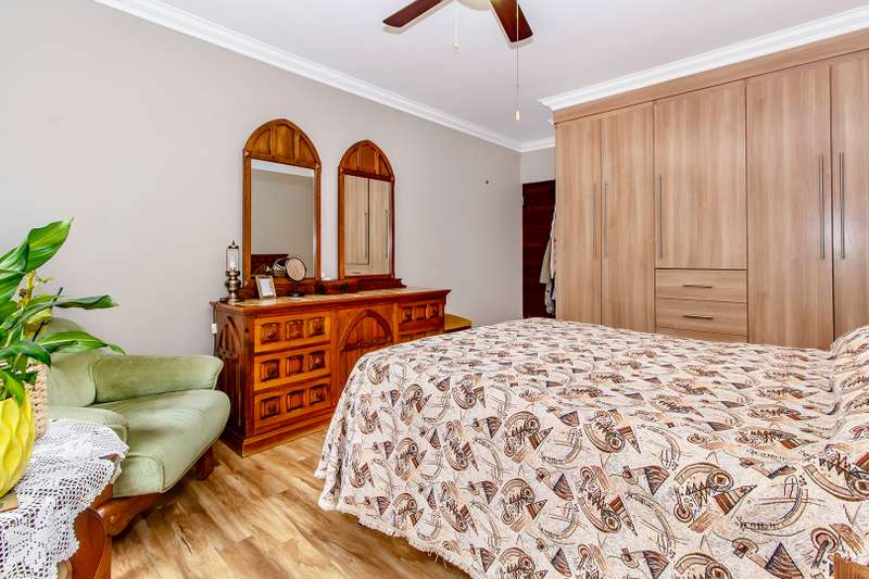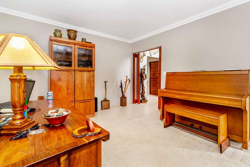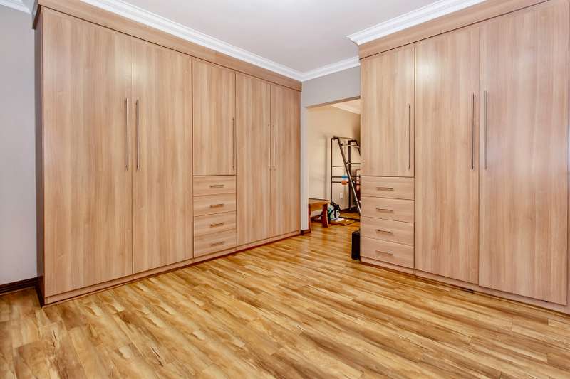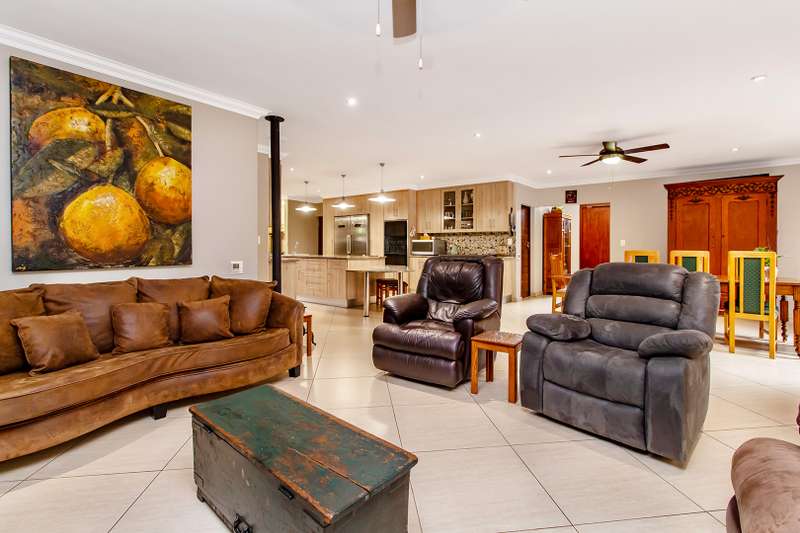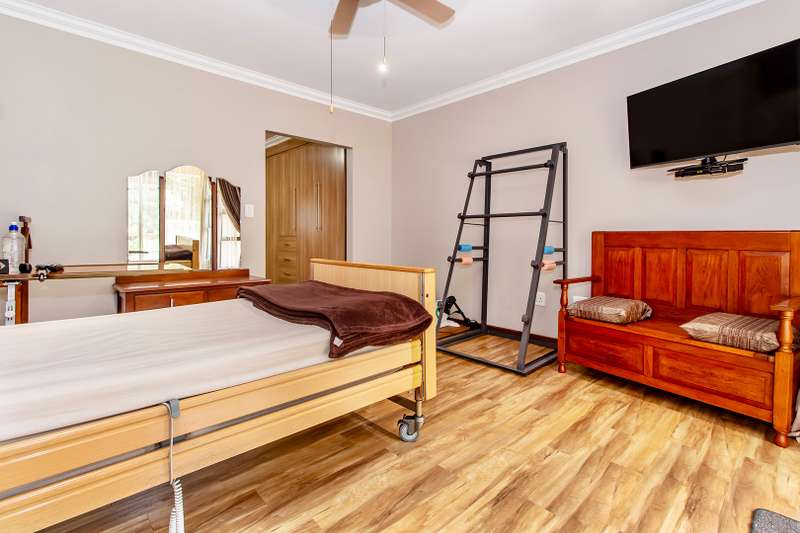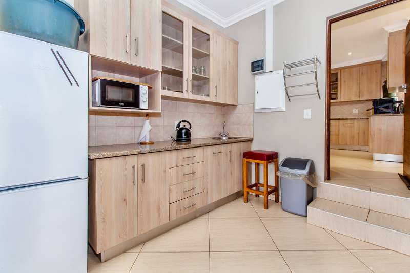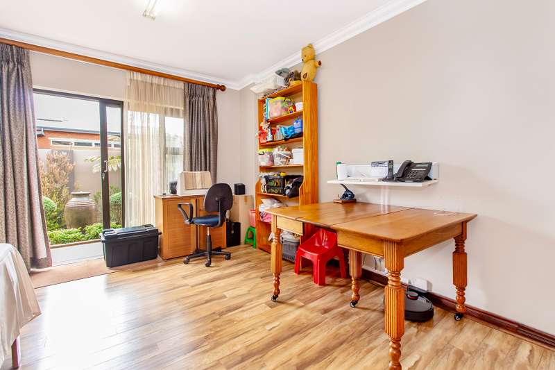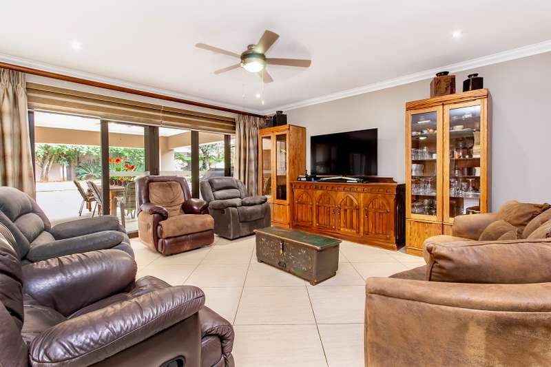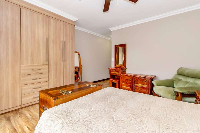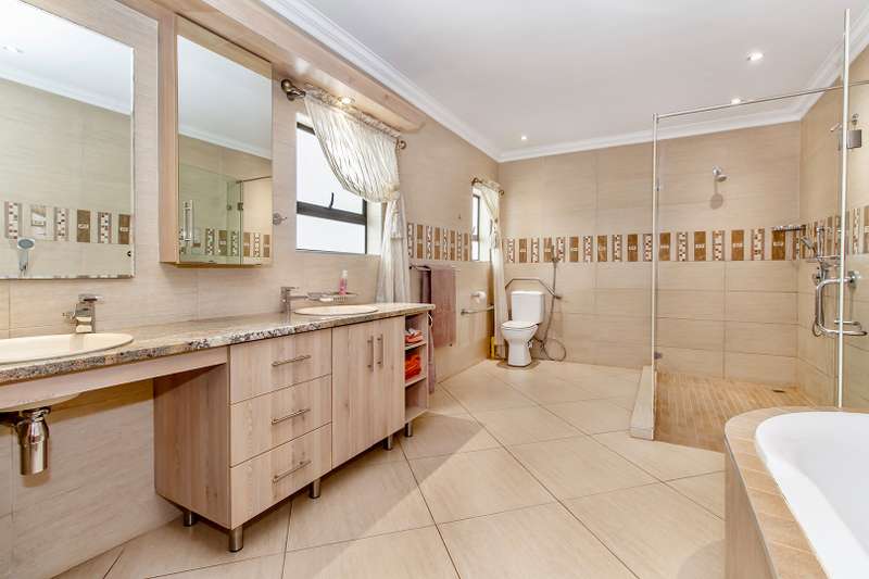 This beautifully designed single-storey home in the sought-after The Wilds Estate combines comfort, practicality, and timeless elegance. With four spacious bedrooms, including a private flatlet with its own bathroom and kitchenette, this home is ideal for families looking for versatility and space. As you enter through the welcoming double doors, you are greeted by a flowing open-plan living and dining area filled with natural light. To the right, you’ll find a well-appointed study and access to the garages, perfectly positioned for convenience. The modern kitchen features granite countertops, a central island that doubles as a breakfast nook, a scullery tucked away for functionality, and premium appliances including a double mid-level oven and gas hob. The living area seamlessly opens onto a covered patio with a built-in braai, overlooking the beautifully landscaped garden and sparkling swimming pool, perfect for entertaining and enjoying relaxed outdoor living. The main bedroom boasts vinyl flooring, a luxurious walk-in closet, and a spacious en-suite bathroom with a double vanity and walk-in shower. The other bedrooms are well-sized and share a modern bathroom with a shower, toilet, and basin. One of these bedrooms also features a private sliding door leading out to a small garden space. The attached flatlet, accessible near the kitchen, provides excellent flexibility with its own bathroom and kitchenette, making it an ideal guest suite, teen pad, or private work-from-home space. Practicality is key, with garaging for five cars (two double garages plus one single) and excellent flow throughout the home. This is more than just a house, it is a home designed for modern living, offering space, style, and comfort in one of Pretoria East’s most prestigious estates.