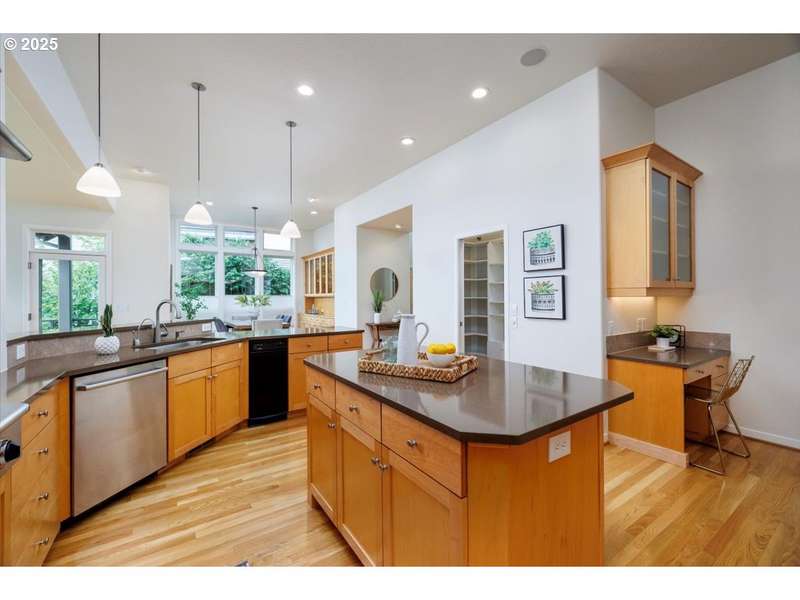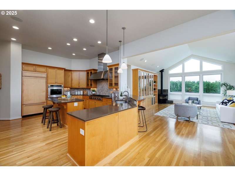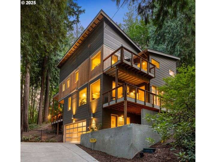 Hilltop Haven with Sweeping Valley & Sunset Views........Avocet Lane is a custom-built contemporary retreat perched at the top of Forest Summit’s quiet cul-de-sac............ Designed for single-level living, this meticulously maintained 3,095 sq. ft. home blends craftsmanship with sweeping panoramic views stretching to the Coast Range..............The Property Highlights.....Floor-to-ceiling windows capture amazing sunsets and expansive valley vistas.........Gourmet Chef’s Kitchen – Quartz counters, oversized island with seating, Sub-Zero refrigerator, Dacor appliances, gas range, appliance garage, and a spacious walk-in pantry..........Luxurious Primary Suite – Vaulted ceilings, customized walk-in closet, spa-inspired steam shower, and a private hot tub deck with unforgettable views..........Flexible Living Spaces – Four bedrooms plus a dedicated office with custom Hayes Cabinets built-ins, a family room, and a Murphy bed for guests...........Exceptional Craftsmanship – Maple cabinetry throughout, white oak hardwood floors, built-in sound system, and wall wash lighting throughout..........Outdoor Living – Expansive Brazilian hardwood decks on two sides with automated awnings, terraced yard, garden space, and a free-standing hot tub..........Bonus Space – 420 sq. ft. heated bonus room plus 149 sq. ft. of secure, heated extra storage on the lower level.........Location-in Forest Summit- this home offers the perfect balance of tranquility and convenience............. Enjoy nearby parks including famous Forest Park with walking trails and quick access to NW Portland dining, shopping, and top-rated schools (Forest Park Elementary, West Sylvan Middle, and Lincoln High). [Home Energy Score = 5. HES Report at https://rpt.greenbuildingregistry.com/hes/OR10220917]