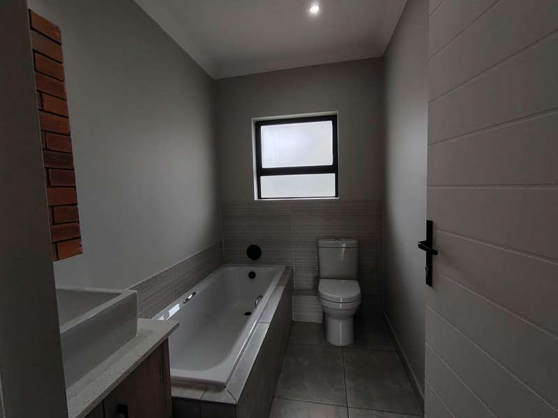 This stunning 3-bedroom, 2-bathroom home offers the perfect blend of style, comfort, and security. Designed for modern living, the home features a spacious lounge, a dedicated dining area, and a well-equipped kitchen with a gas stove and separate storage space. A study provides the perfect work-from-home setup, while the guest toilet adds extra convenience. Step outside to enjoy the private patio with a built-in braai, ideal for entertaining. The beautifully maintained garden is pet-friendly, offering ample space for relaxation. The home is fitted with a solar geyser for energy efficiency and includes two garages with paved driveways. Safety is a priority with 24-hour security, an access-controlled gate, electric fencing, an intercom system, and a dedicated security post. A home that truly has it all?Çödon?ÇÖt miss this incredible opportunity!