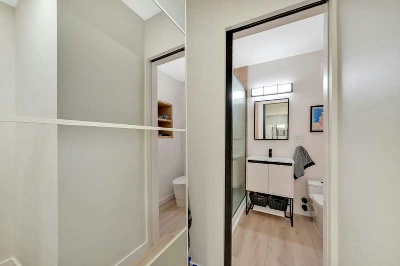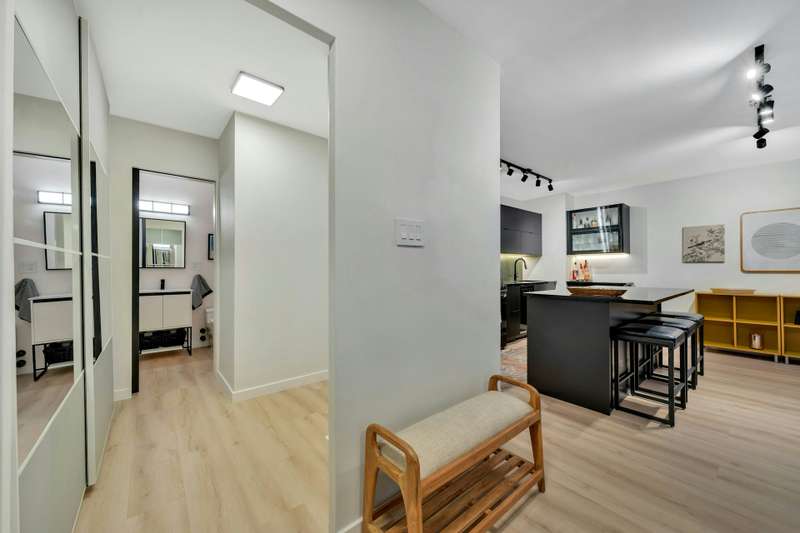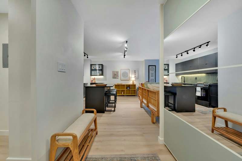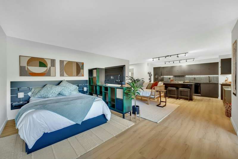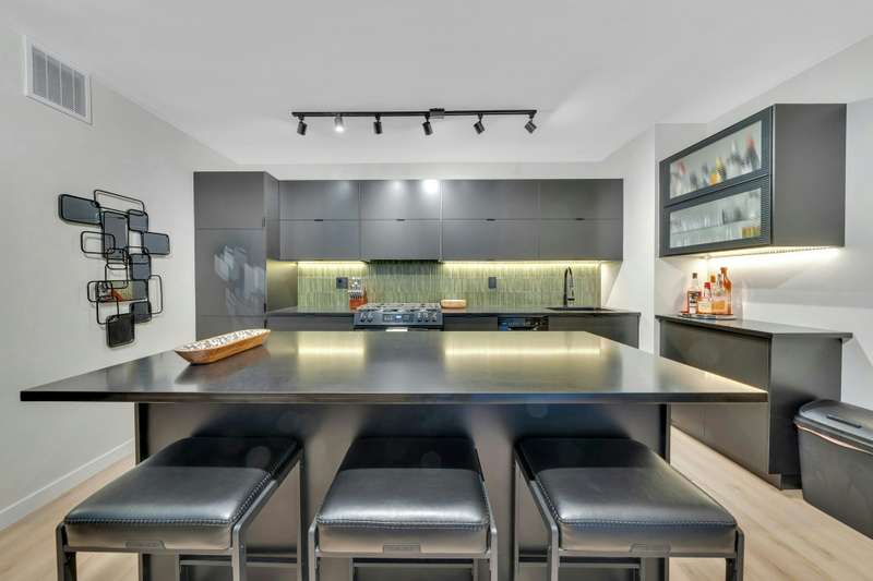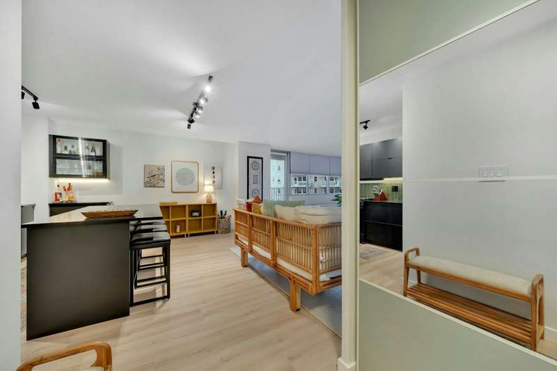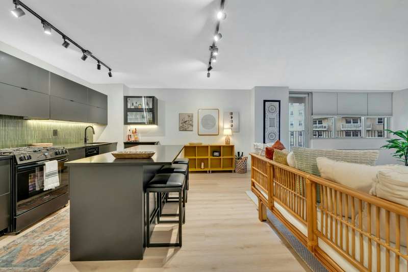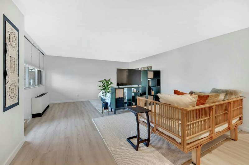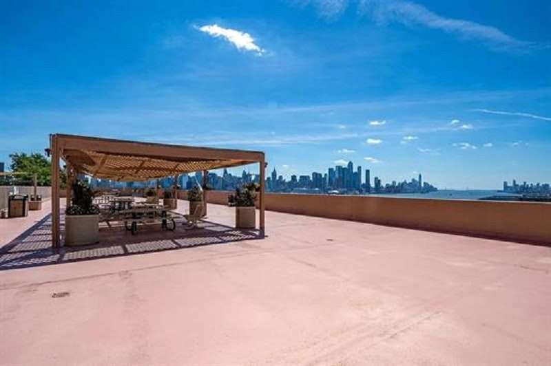 This completely gutted and fully renovated west-facing studio at the Riviera Towers in West New York offers modern luxury, a private terrace, and a prime Boulevard East location. The open-concept layout showcases a redesigned kitchen with all-new soft-close cabinetry, custom panel-ready refrigerator, stainless steel appliances, under-cabinet lighting, a spacious island with electric and storage, bar area, cold water filter, and sleek track lighting. The spa-style bathroom was rebuilt from the studs with a walk-in shower, low-profile toilet, vanity, pocket door, medicine cabinet, built-in storage, and all-new fixtures. Electrical and plumbing have been fully updated, including a new sub panel, rewired outlets with kitchen dimmers, and new shut-off valves. Throughout the home, commercial-grade waterproof luxury vinyl flooring, new baseboards, modern light fixtures, built-in closets, a new PTAC heating and cooling unit, and updated window treatments including the terrace door create a fresh, move-in-ready space. Riviera Towers residents enjoy exceptional amenities including a pool area with sweeping New York City and Hudson River views, barbecue area, 24-hour concierge, optional on-site gym membership, parking, and a convenience store. Perfectly situated near buses to New York City, with close access to the Light Rail, New York Waterway ferry, local parks, cafés, markets, and restaurants, this home blends style, comfort, and convenience in one of the most desirable locations along the Gold Coast.