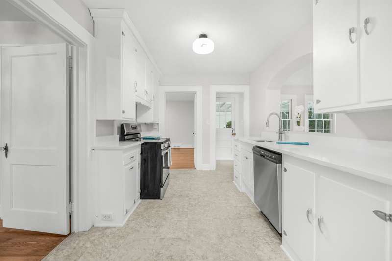 MOTIVATED SELLER - This beautifully maintained 3BR/2BA all-brick home has been updated for today's lifestyle while preserving its arched doorways with charming dining and spacious living areas. It features fresh paint and new lighting throughout, with original hardwood floors professionally sanded and refinished. Brand-new flooring provides durability with a move-in-ready updated kitchen and baths. The kitchen boasts new quartz countertops and includes all-new appliances: refrigerator, range, dishwasher, and washer dryer. A light-filled sunroom can be enjoyed year-round. The dedicated home office or hobby room has custom cabinetry and provides flex space for remote work and relaxation. Two fireplaces add a cozy touch. A detached two-car garage with space for a shop sits on almost half an acre of landscaped yard.