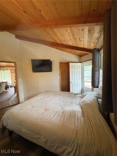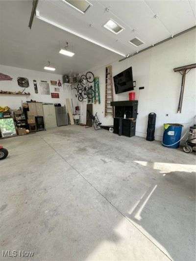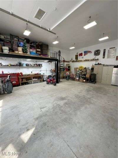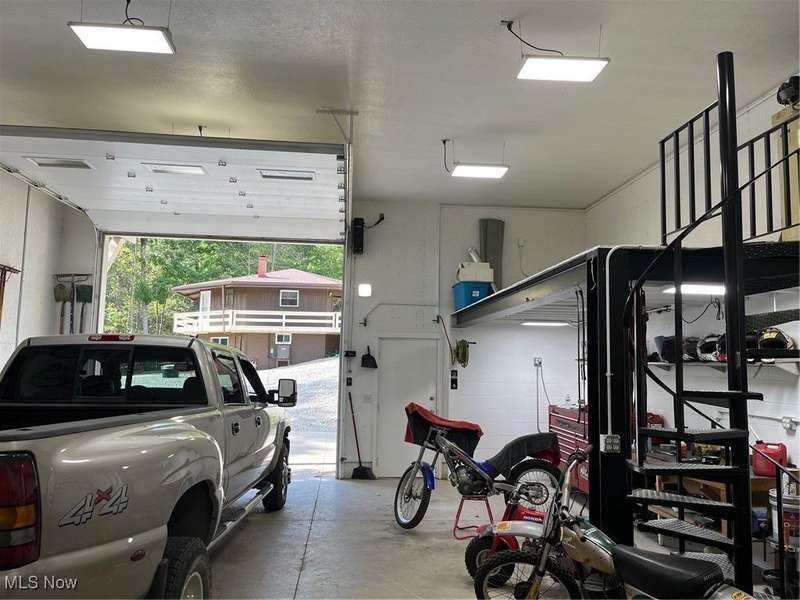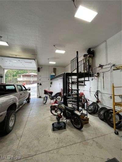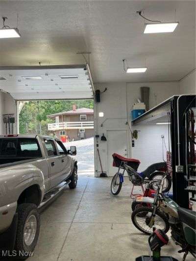 Here is a unique opportunity to own one of the original octagon homes built at Lake Mohawk. Nestled on 2.5 lots, this private setting boasts seasonal lake views. Nice updates, the main level features open floor plan, natural wood cathedral ceilings with beams, comfortable living room with stone fireplace, three bedrooms, full bath and efficient kitchen with stainless appliances. The lower level extends your living area with office space or playroom, spacious laundry area with plenty of counter space and showcases a modern second full bath. This level provides direct access to the attached garage for convenience. Home features wrap around porch with added deck...great for entertaining and cookouts or just relaxing and enjoying the views. The property truly shines with its exceptional detached garage/workshop. Constructed in 2022, the main garage is 34' x 28', separate 200-amp service, 19' x 7' mezzanine storage area, hot/cold sink, high bay LED lighting and gas 55,000 BTU heater. Overhead door (12' x 12) with automatic opener and two man-doors for easy access. Plumbed air compressor is also available. Large workshop upstairs with private entrance is ideal for home office or hobby room, complete with half bath and a/c unit. Lake Mohawk has 500-acre lake for boating (unlimited horsepower), swimming, fishing, tennis court, pickleball courts, clubhouse and baseball field. Separate membership available for golf course. Convenient to Akron, Cleveland and Pittsburg areas.