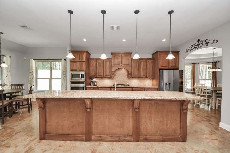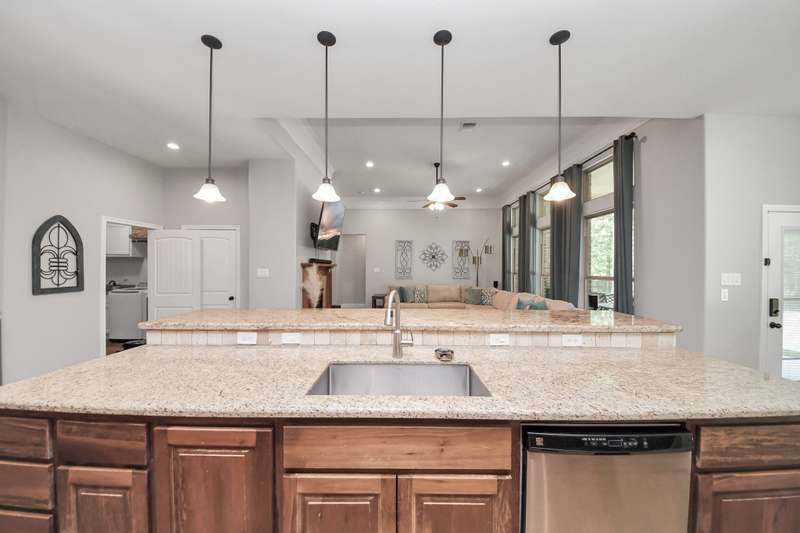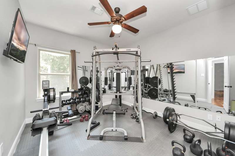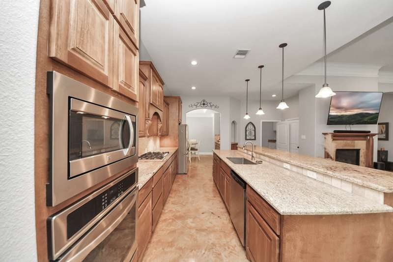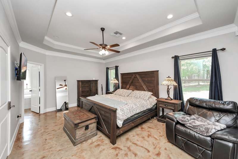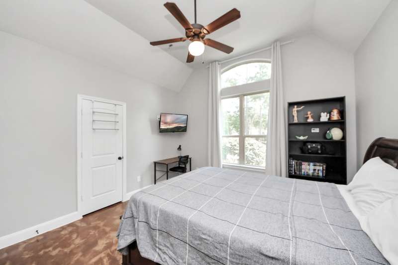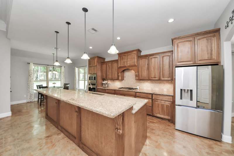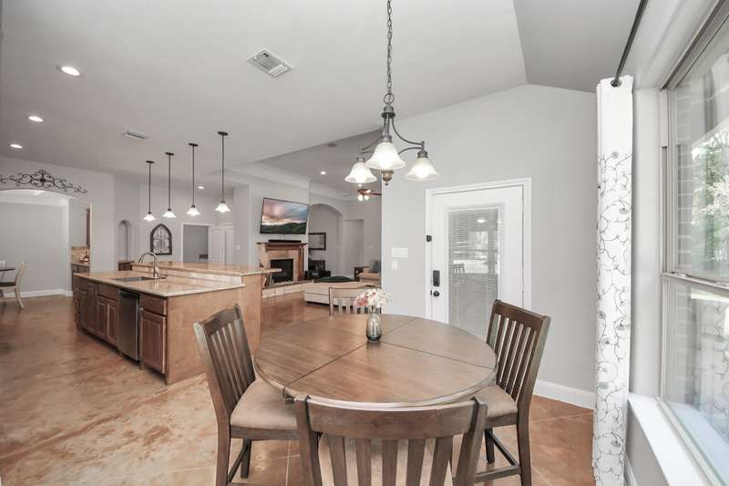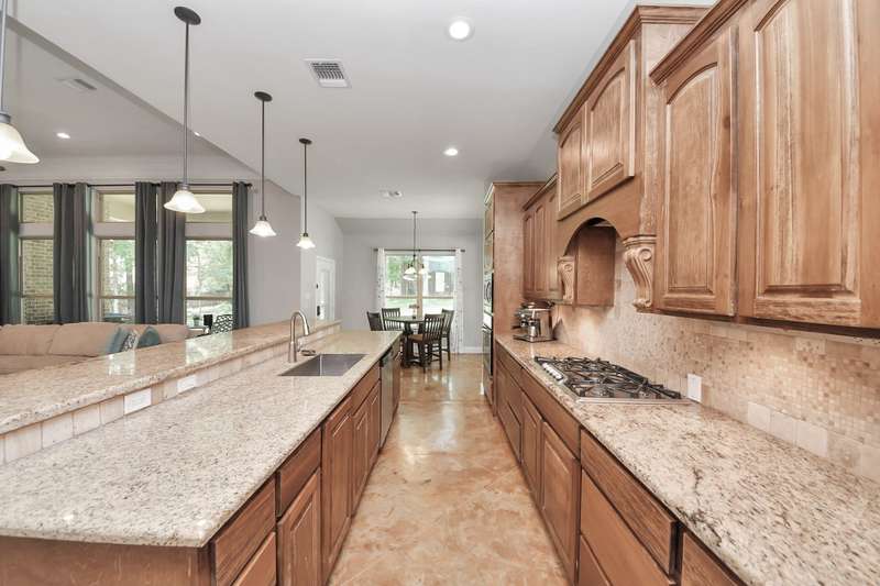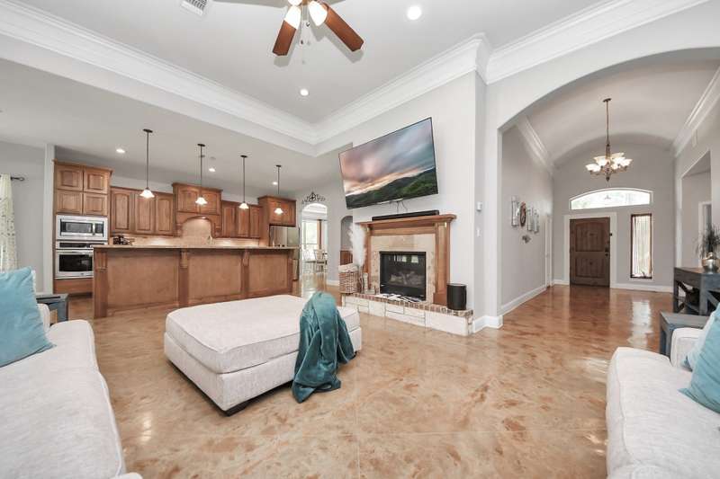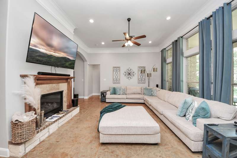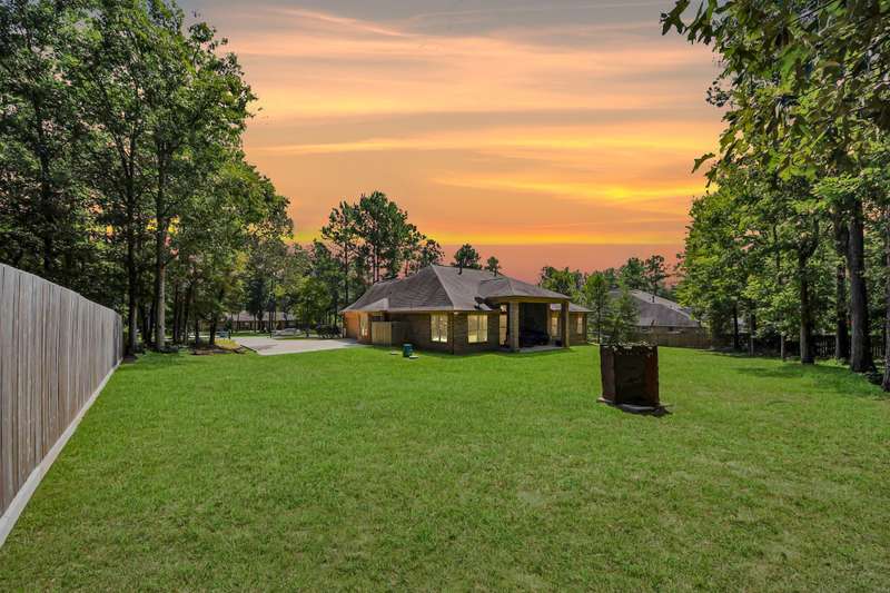 Welcome to 14813 Turquoise Trail, A stunning contemporary Freshly painted home with a Whole house Generac Generator set on 1.18 acres in the gated Emerald Lakes community., This 2,815 sq/ft residence offers 4 spacious bedrooms, 2.5 baths, and an open concept design with soaring ceilings and abundant natural light. The gourmet kitchen features granite countertops, stainless steel appliances, a large island, and flows seamlessly into the living and dining areas. The primary suite boasts a spa-like bath with dual vanities, soaking tub, and walk-in shower. Secondary bedrooms are well-sized, Step outdoors and enjoy a covered patio and expansive yard with endless potential for a pool or garden, all framed new wooded privacy fence. Emerald Lakes amenities include a clubhouse, fitness center, resort-style pool, tennis courts, lakes, and trails. Conveniently located near I-45, shopping, and schools, this home combines privacy, space, and luxury in one.