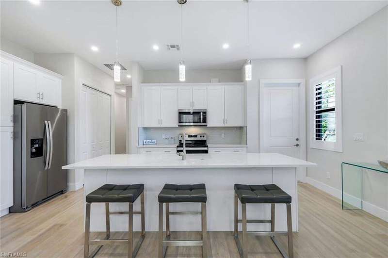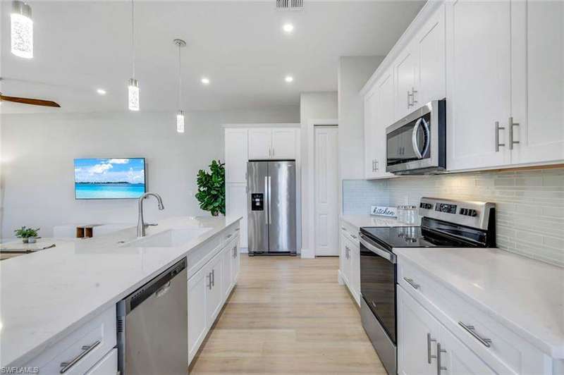 JASPER FLATS - NEW CONSTRUCTION IN NAPLES - Attached Villas: The Dakota floor plan features 2 bedrooms and 2 baths with 1264 sq. ft. under air and a single car garage. Superior standard fittings and finishes including: CBS construction, Quartz countertops throughout, solid wood Shaker style cabinetry, Moen and Kohler plumbing fixtures, stainless steel kitchen appliances and tankless hot water heaters, luxury vinyl plank flooring, frameless tempered glass shower enclosures are included and all closets feature ventilated shelving. Impact glass windows and slider doors standard throughout. Optional Paver Patio available. Great South Naples location, 10 minutes from downtown Naples and the beaches, close to Bayshore Arts District/Celebration Park, convenient to I-75! PHOTOS ARE OF THE MODEL OF THIS FLOOR PLAN AND THE COMMUNITY. THIS UNIT IS OFFERED UNFURNISHED.