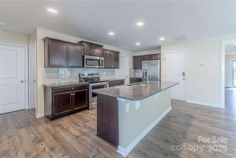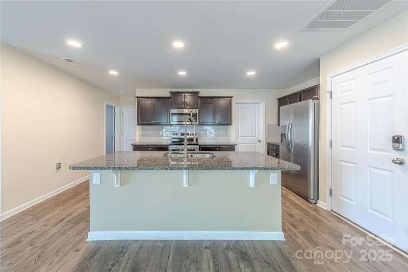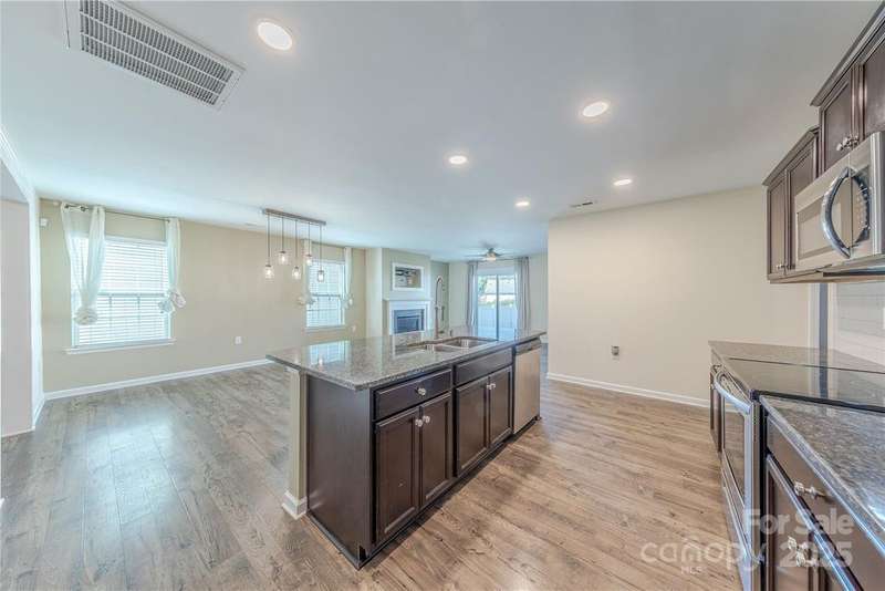 Situated on a premier lot in desirable and convenient Hallstead, this beautifully updated 5 bedroom home, complete with full guest suite on the main, is move-in ready. A covered porch leads to the wide open foyer. The open concept floor plan is ideal for modern living. Chef's kitchen features ample 42? cabinets, subway tile backsplash, stainless appliance, enormous walk-in pantry and granite counters. Oversized great room has gas fireplace and sliding door to backyard. Perfect for both casual or formal gatherings, the dining room has been updated with custom light fixtures. Full bedroom and bath on main level. Huge primary suite is truly a retreat with large walk-in closet and en suite bath including double vanity, garden tub and glass enclosed shower. 3 additional generously sized bedrooms upstairs plus full bath and dedicated laundry room. Relax on the entertaining patio overlooking the fenced backyard. Conveniently located moments from premier shopping, dining and entertainment, this is a must see.