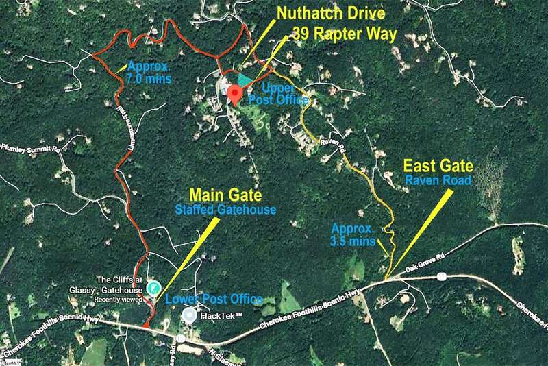 Come home to THE CLIFFS at GLASSY, the Cliffs' ORIGINAL GATED GOLF COMMUNITY atop majestic Glassy Mountain in Landrum, SC. GLASSY offers STUNNING VIEWS and a beautifully MANICURED COMMUNITY that blends mountain serenity with LUXURY LIVING. This EXCEPTIONAL, LEVEL, BUILDABLE ONE.ELEVEN-ACRE LOT is ready for your DREAM HOME in one of South Carolina's MOST PRESTIGIOUS MOUNTAIN COMMUNITIES. Enjoy a PRIVATE AND PEACEFUL SETTING surrounded by towering hardwoods, with WALKING DISTANCE ACCESS to the WELLNESS CENTER, PAVED WALKING TRAIL, UPPER POST OFFICE, KIDS AND DOG PARK, and a SCENIC MOUNTAIN OVERLOOK PARK. The lot offers DUAL ROAD ACCESS?one on RAPTER WAY with TWO PARTIAL MOUNTAIN VIEWS, and another on NUTHATCH DRIVE, just a short stroll to the Wellness Center. Close PROXIMITY TO THE EAST GATE provides convenient access in and out of the community. With 344 FEET OF ROAD FRONTAGE on a LEVELED LOT, this homesite allows for a SPRAWLING CUSTOM BUILD with excellent privacy and no neighboring homes nearby. Perfect site for an IN-GROUND POOL!!!! Located just MINUTES FROM THE COMMUNITY POST OFFICE AND MEETING ROOMS, this property offers the best of both NORTH AND SOUTH CAROLINA living in a SECURE, SCENIC, AND ACTIVE MOUNTAIN COMMUNITY. This lot Does NOT include a Membership, however, if you are interested in one, LET'S DISCUSS THE AVAILABLE OPTIONS. We can also talk about NEXT STEPS such as getting the lot PERC AND SOIL TESTED, and connecting with a QUALITY BUILDER. Don't miss the chance to walk this homesite and experience its IDEAL LOCATION. SEE PHOTOS for proximity to amenities that your FAMILY AND GUESTS will love being able to walk to!