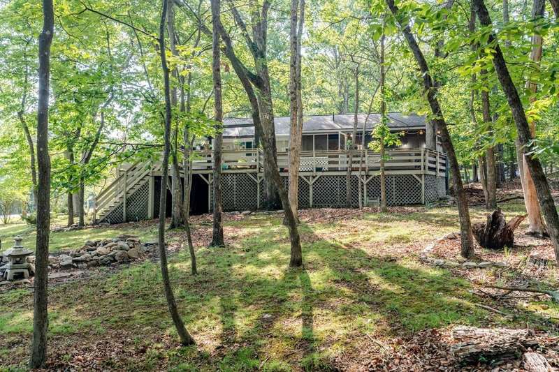Updated Description and move-in ready! Now cleared out—photos show prior furnishings. This charming 3-bed, 2-bath home sits on a .28-acre wooded lot inside the gates of Massanutten Resort. With 1,334 sq ft of well-maintained living space, it offers a peaceful retreat with a serene backyard featuring mature trees and a tranquil pond. Relax on the spacious wrap-around deck or unwind in the Jacuzzi after a day of adventure. Located less than 2 miles from the ski lodge and minutes from Massanutten Water Park, this property offers year-round fun. Whether full-time, vacation, or investment, this home fits the bill. Great for short- or long-term rental, with resort amenities at your doorstep. 6.1% VA Assumable Loan for qualified buyer. Home’s updates since owner’s purchase are now uploaded under Documents.