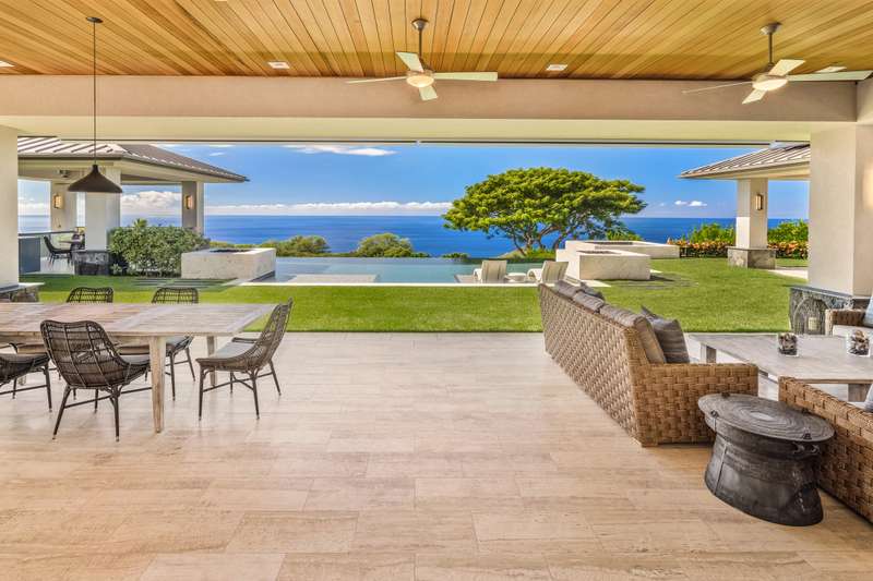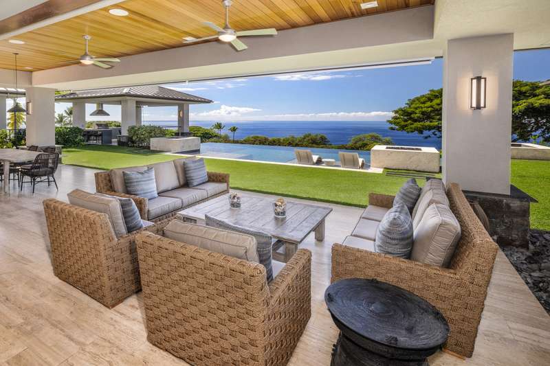 Refined Craftsmanship & Unique Indoor-Outdoor Living is reflected in every room and connects to lush landscaping, enhancing the indoor-outdoor flow and taking advantage of its natural environment. Pocket sliding doors open the interiors to an expansive covered lanai with stunning views.