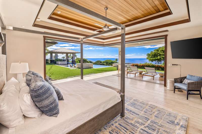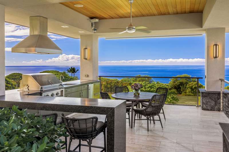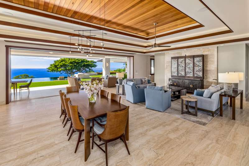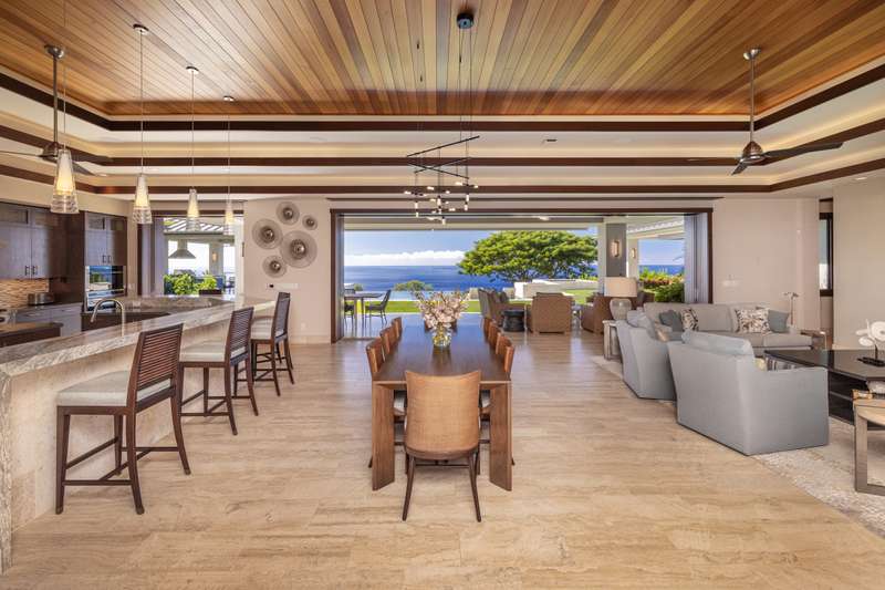 High ceilings with rich wood paneling create a warm and inviting atmosphere, while award winning built-in cabinet screens add both artistry and functionality. Fully furnished with luxurious finishes, this residence embraces open-air living, blending traditional tropical materials with modern aesthetics to create an elevated island-inspired experience, enhanced by gentle breezes and awe inspiring views from every corner.