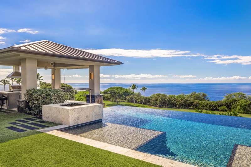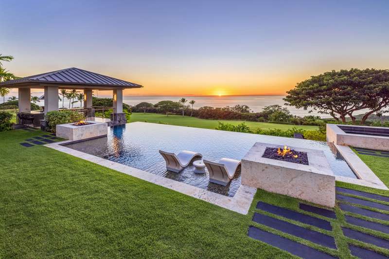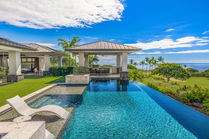 With more than 7,000 square feet under roof, the property includes a dedicated office, a spacious great room, 4 bedrooms, and 4.5 bathrooms. The private pool and spa tub provide a tranquil retreat, where you can start your mornings with a swim or end your evenings soaking in the vibrant hues of the Hawaiian sunset. A Hokulia Membership is included in the purchase price.