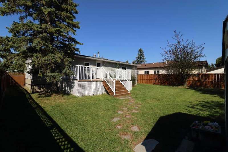 Clean & Cozy ! This well kept home has had many upgrades over the years. 2 bedroom plus a den, all on the Main floor. 1 Full bathroom and a 2 piece Ensuite off the spacious Primary bedroom, make this a Great Starter home for First time buyers or for the Investor. Located next to the Elementary School with a Huge Playground and Soccer fields, you can watch the kids from the window. The large deck off the back of the kitchen make it handy for the outdoor BBQ's. This home is also located next to the Walking path and easy proximity to Shopping, Genesis Place and access to the Deerfoot. Easy to show, so come view and enjoy