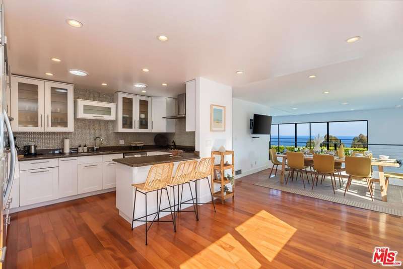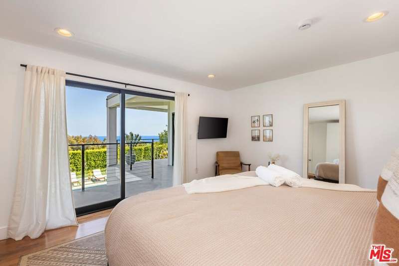 The Robert Conrad Estate...Set behind private gates, this modern home offers 2 levels of sleek architectural serenity with expansive views of the Pacific Ocean from every room. From the entry courtyard, a foyer leads you up to the home's top level with gourmet kitchen, dining area, 2 bedrooms, spacious en-suite master with private terrace, and sliding glass doors that open onto a full-width ocean-view deck. One level down is an additional bedroom, dedicated spaces for an at-home gym and game room, and the light-filled 2-story living room with custom fireplace and exceptionally large windows and glass doors that seamlessly blend indoor-outdoor living. Perfect for entertaining, the manicured grounds include resort-like salt-water pool and spa, bathroom with direct outdoor access, beach volleyball court, putting green, fire pit, BBQ, and unparalleled sunset views. Complete with an attached 2-car garage, this modern retreat embodies the finest of Malibu living. There is a lease in place through 4/30/27.