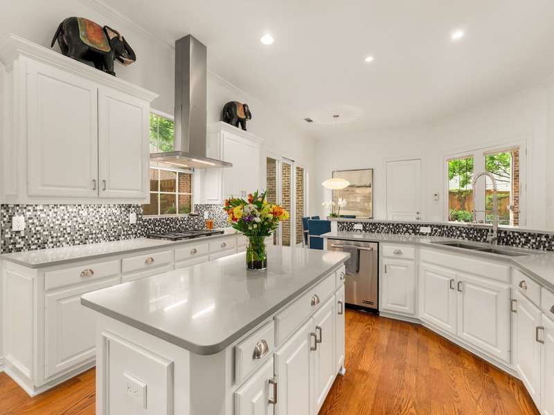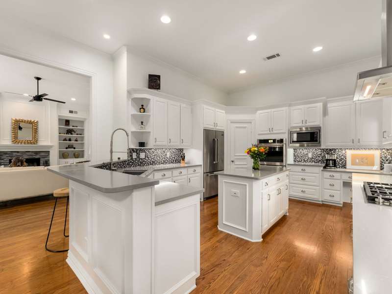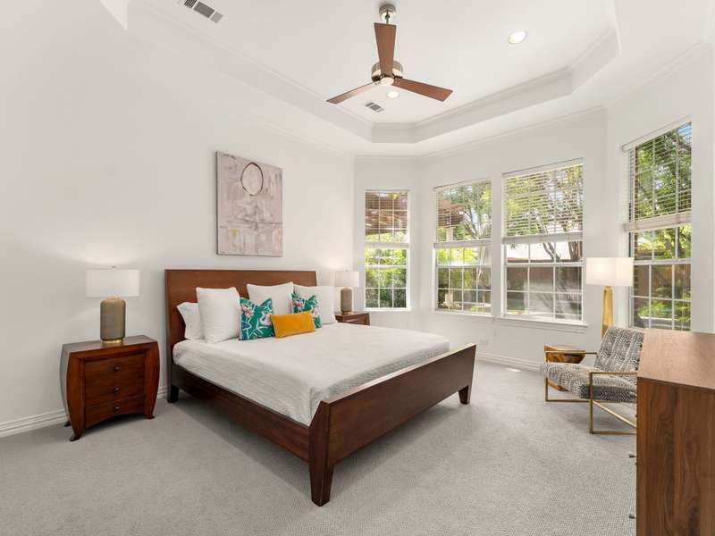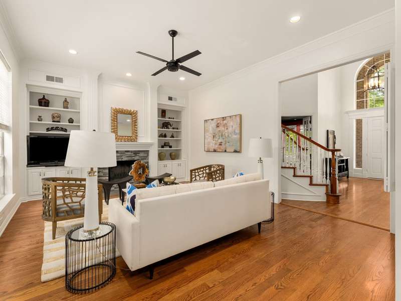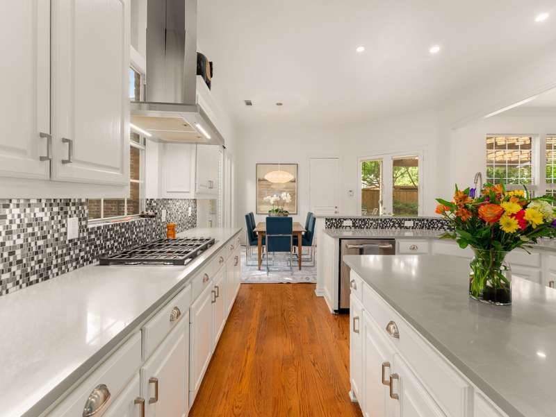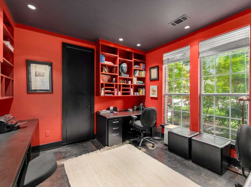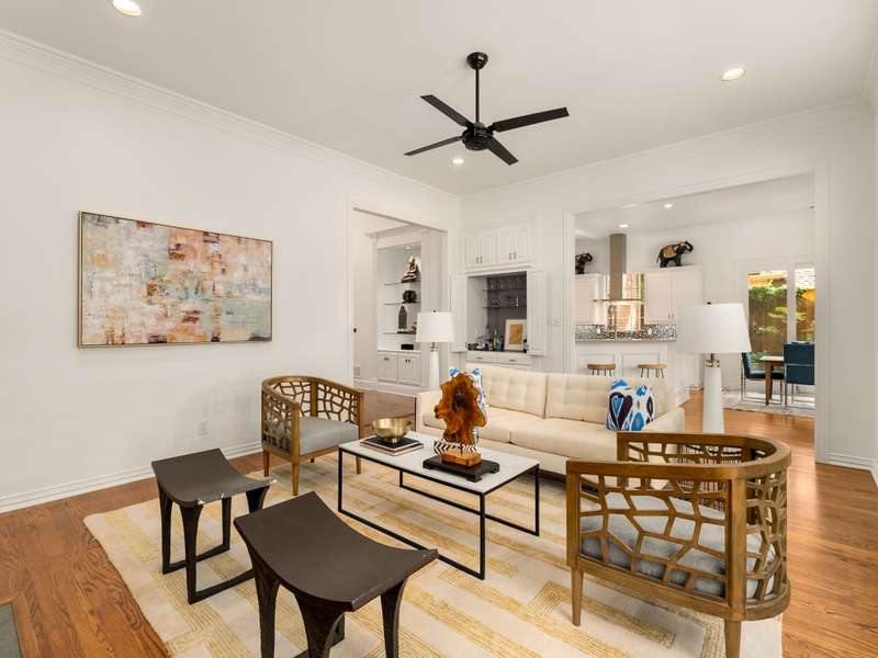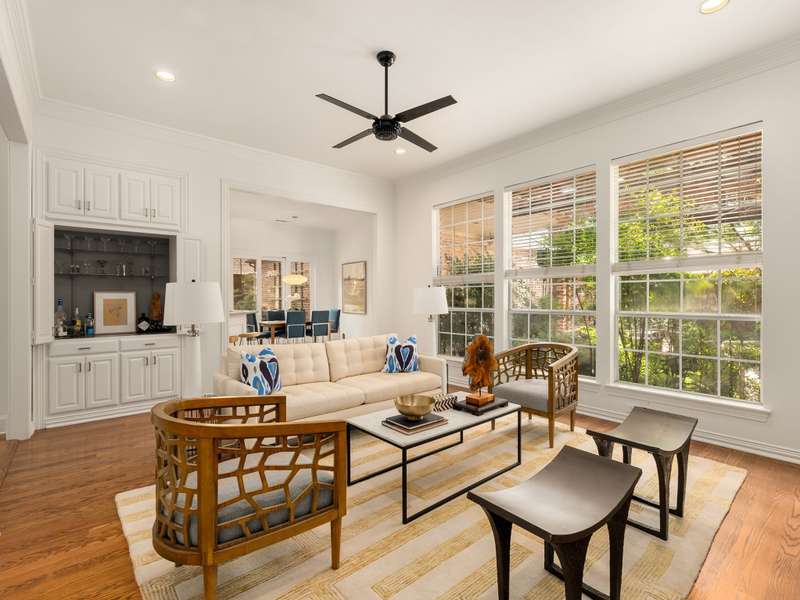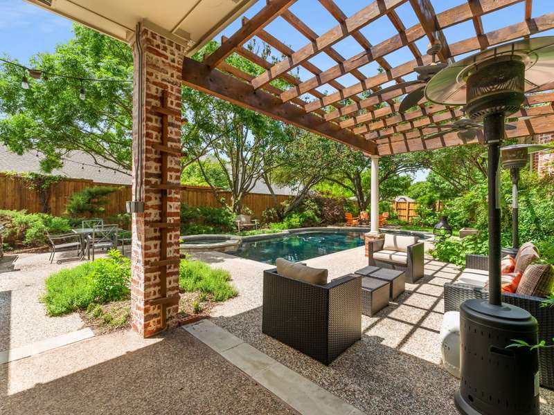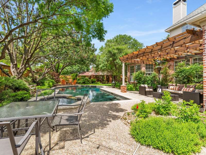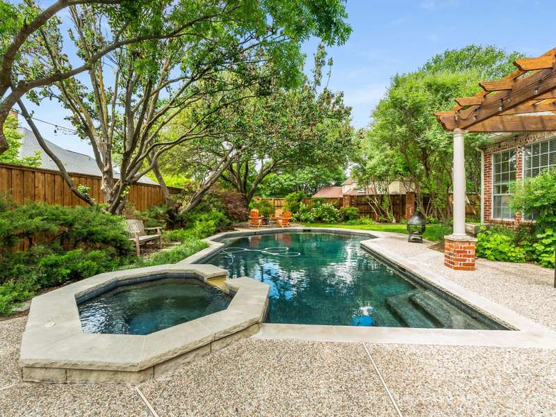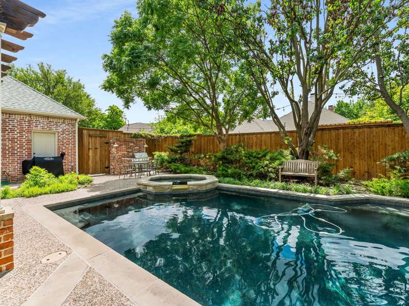 Nestled on a picturesque corner lot, this stunning home is surrounded by a canopy of mature trees, creating a serene oasis in the city. Step inside to an open floor plan where the kitchen flows right into the dengreat for hosting or just hanging out. You also get the charm of separate dining and living rooms nearby, keeping things cozy without feeling closed off. An exquisite courtyard with lush landscaping is situated just off the kitchens eating area, offering a serene and tranquil ambiance. On the main level, the spacious primary bedroom and a dedicated office provide convenience and privacy. Upstairs youll find three more bedrooms plus a game roomplenty of space for everyone. One of the best features is the wall of windows in the den and breakfast room, that brings in tons of natural light and frames the backyards lush views. Step outside to your private paradise. Whether dining alfresco, lounging by the sparkling pool, gathering around the fire pit, or swinging under the trees, the backyard offers countless spaces to unwind and reflect. Whether youre hosting friends or just soaking up the quiet, this backyard is a true escape right in the city.