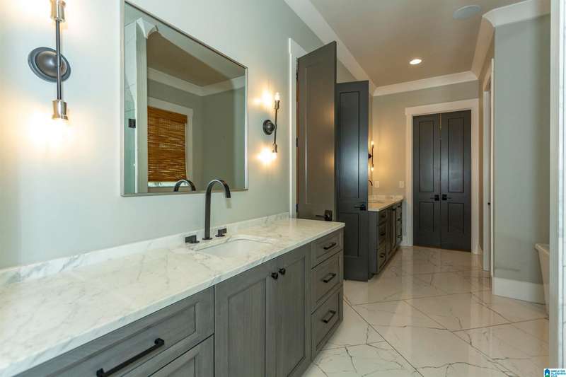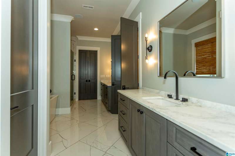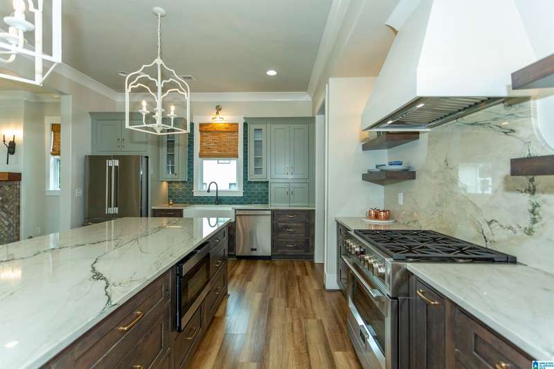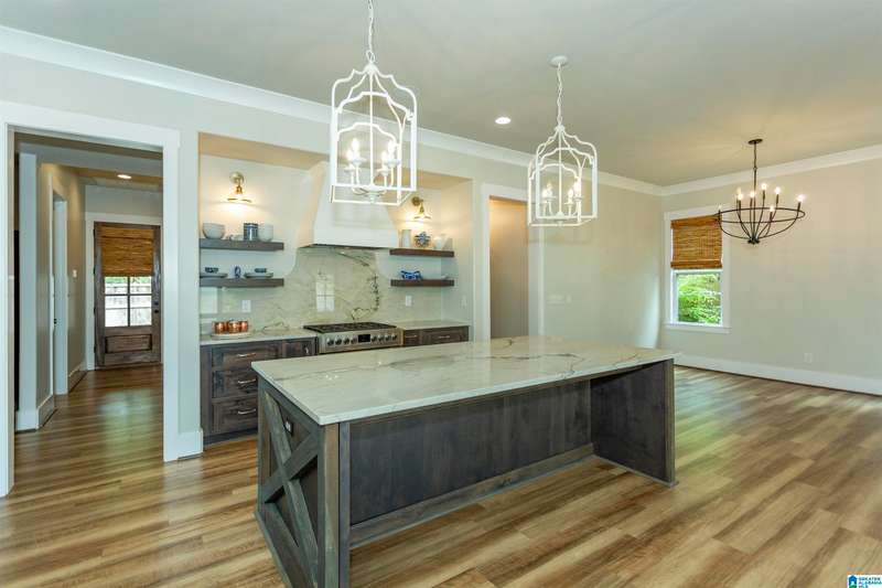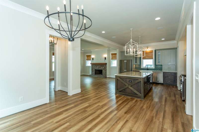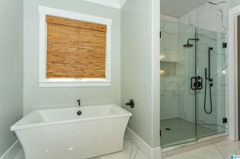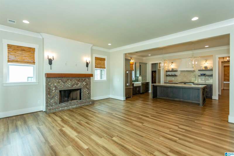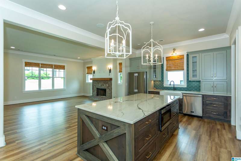 Welcome to a new community in Vestavia! As you enter the home, enjoy the two story foyer adjacent to the open living room with 10' ceilings and custom fireplace. The kitchen is open to the living and dinning room and features quartz countertops, Fulgor stainless steel appliances, Kohler fixtures , apron farm sink ,large pantry, custom cut slab backsplash and large quartz island . The flow is open from the kitchen past the main level garage and laundry room leading to a covered patio with an outdoor fireplace. The main level master suite joins the spa like master bath with his and her vanities, walk in closets with custom built ins, soaking tub, powder room and large custom tile glass shower. Upstairs the plan features 3 bedrooms and 2 baths accompanied by a generous den area. Come see today!