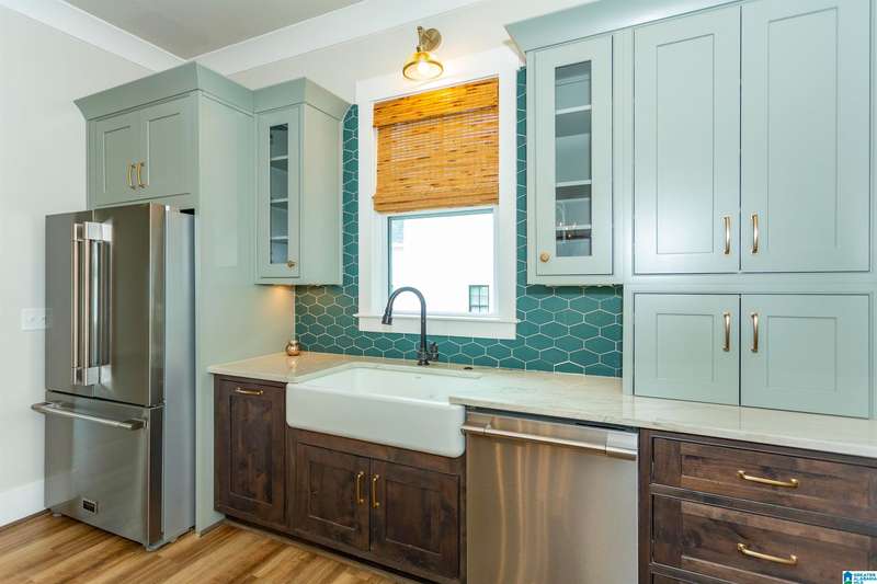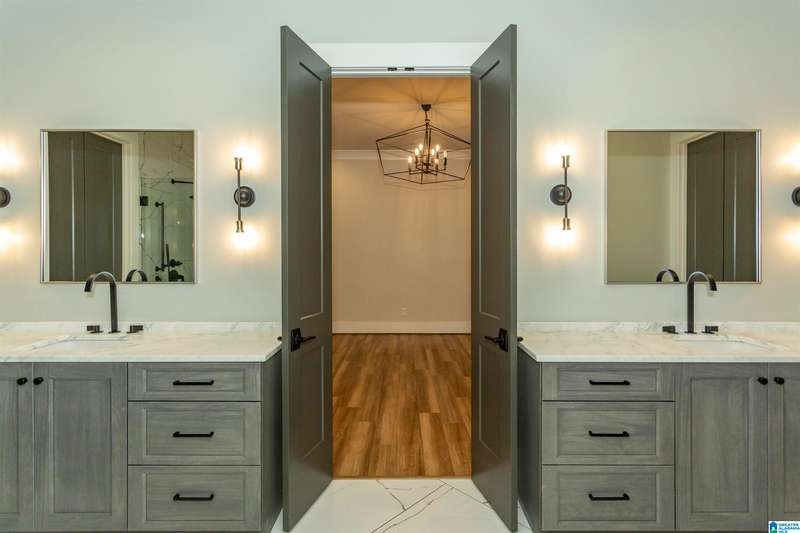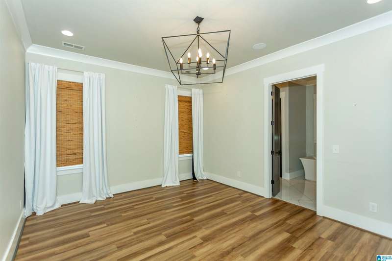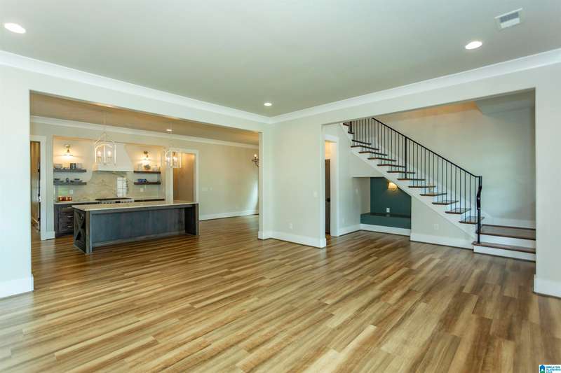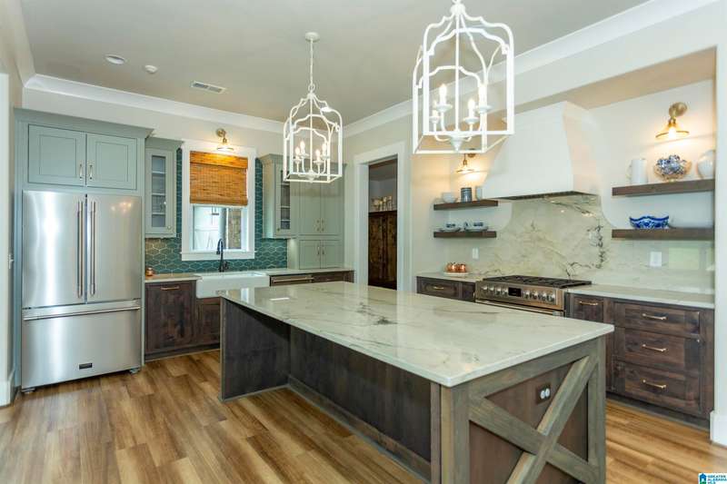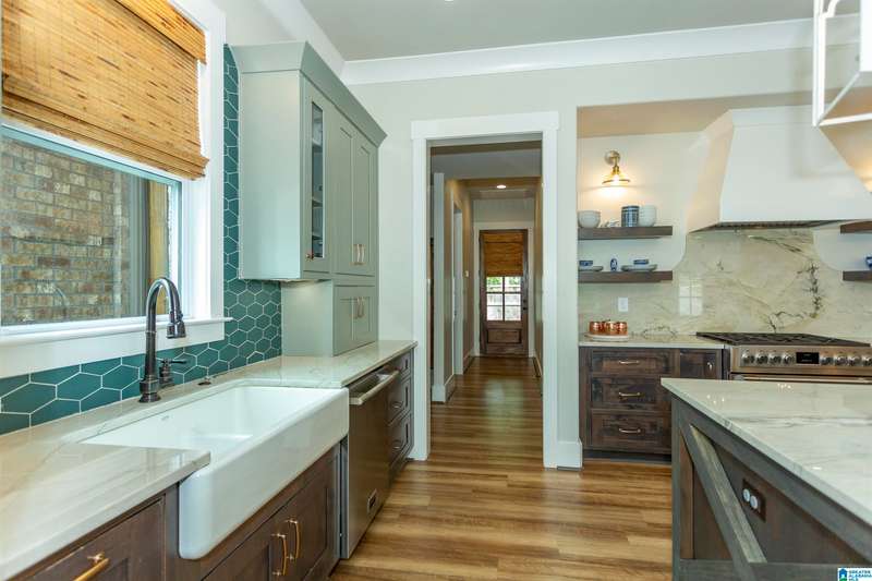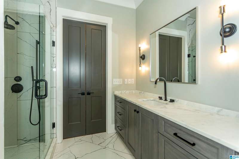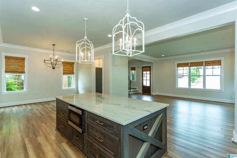 Welcome to a new community in Vestavia! As you enter the home, enjoy the two story foyer adjacent to the open living room with 10' ceilings and custom fireplace. The kitchen is open to the living and dinning room and features quartz countertops, Fulgor stainless steel appliances, Kohler fixtures , apron farm sink ,large pantry, custom cut slab backsplash and large quartz island . The flow is open from the kitchen past the main level garage and laundry room leading to a covered patio with an outdoor fireplace. The main level master suite joins the spa like master bath with his and her vanities, walk in closets with custom built ins, soaking tub, powder room and large custom tile glass shower. Upstairs the plan features 3 bedrooms and 2 baths accompanied by a generous den area. Come see today!