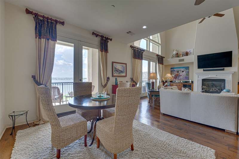 Waterfront Living Like No Other - Step inside this rare 3,636 sq. ft. lakefront condo and discover a lifestyle lake front living just minutes from Dallas. With expansive open living spaces, four bedrooms, a private office, and sweeping views of Lake Ray Hubbard, this home was designed for gathering family and friends while still offering quiet corners to escape and unwind. From sunrise coffee on your balcony to evening sunsets that paint the sky, every moment here is framed by the water. Launch your boat or jet ski nearby for a day on the lake, or take a short stroll to The Harbor for dinner, live music, sailing regattas, movies and seasonal festivals. Your weekends will feel like vacationwithout ever leaving home. The interiors are just as captivating. Sunlit rooms flow together for effortless entertaining, while the chefs kitchen features quartzite countertops, premium Caf appliances, and thoughtful built-ins that make hosting a joy. Two covered balconies (one with a remote sunshade) extend your living outdoors, perfect for cocktails with friends or quiet evenings watching the moon shimmer across the water. Retreat upstairs to your primary suite, complete with its own fireplace, spa-like bath, walk-in closet, and a private balcony that captures dazzling skyline views of Dallas. Every bedroom is ensuite, offering comfort and privacy for guests or family. Also designed for easy living, this waterfront condo offers a one car garage AND a covered carport steps away from the front door. With nearly $200,000 in recent updatesincluding hardwood floors, plantation shutters, custom built-ins flanking fireplace, full update for primary bath, new lighting & dual new furnacesthis home is move-in ready & designed for years of enjoyment. A flight of stairs up to the front door - and from there the views throughout the condo are breathtaking! Here, every day feels like a getaway. This isnt just a home. Its a waterfront lifestylerarely available, and truly unforgettable.