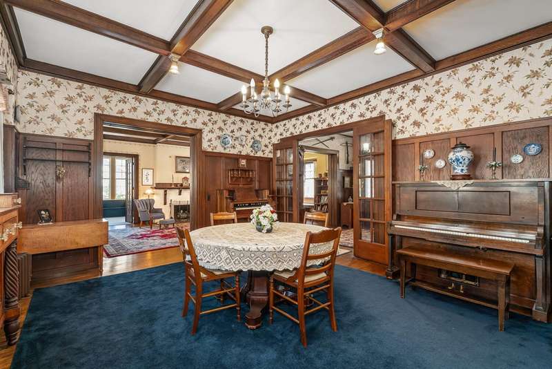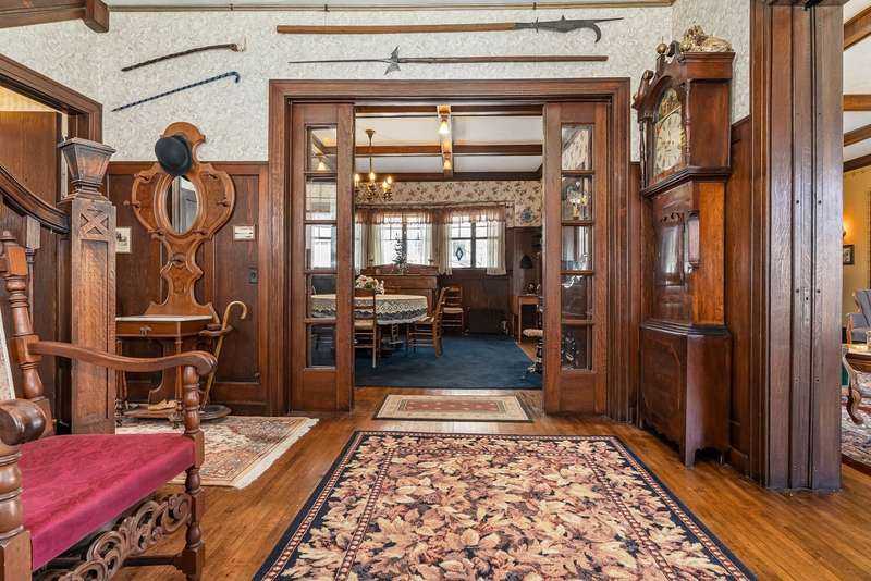 Designed by architect Forrest Van VolkenBerg, construction on this stately Dutch Colonial Revival style home was completed in 1911. This is the first time this home has been sold since 1945. The Craftsman style expressions of the period are distinguishable in the eyebrow window, bracketed eaves, pierced pier canopy covering the arched front entry and the enclosed 3 season porch. This iconic home is part of the Henderson Park/West Main Hill Historic District and is listed on the National Register of Historic Places alongside the Henderson Castle which is just a short, 2 block, stroll along the picturesque tree lined street. The elegant grand foyer graciously connects with the large living room and a stunning formal dining room through either of two sets of double doors with the original leaded glass. The spacious living room has a fireplace, coffered ceilings and has two doorways into a wonderful 2 season porch with 2nd fireplace. The formal dining room has coffered ceilings, 3/4 wainscoting and built in cabinetry. A real butlers pantry connects the formal dining room with the kitchen and a small room once used as a telephone room. In the kitchen you'll still find the bell box used to notify the servants that something was needed on one of the other floors. On the 2nd floor you'll find 4 bedrooms, one currently used as a living area with yet a 3rd fireplace, a full bath and a enclosed sun room. The 3rd floor has a 5th bedroom, full bath and game room. A full basement offers more than amble storage, a workshop area, finished living area and laundry. You'll find the original woodwork and original leaded glass throughout this extremely well cared for home. There are 2 garages, the 2 car is attached to the home by a lovely deck and the other is a one car garage with attached storage area. The roof was replaced in 2022 and new city water line in 2024. Preapproved or buyers with proof of funds only.