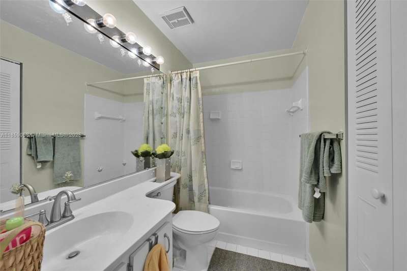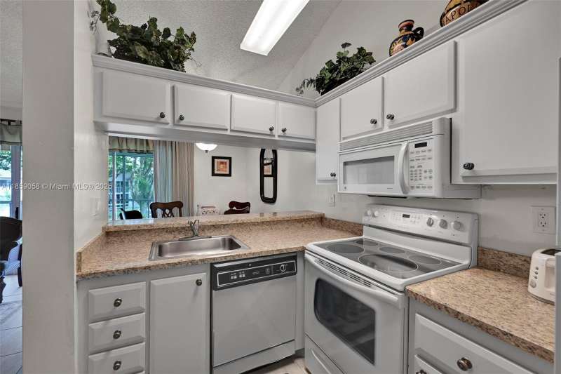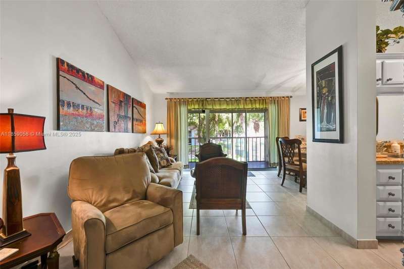 Discover this inviting 1-bedroom, 1-bath residence in the desirable Parc Vista community of Kendall. Surrounded by lush, tree-lined streets, residents enjoy access to resort-style amenities including a fitness center, tennis courts, and multiple sparkling pools. This bright and airy unit offers vaulted ceilings, abundant natural light, and serene views of the tennis courts and landscaped courtyard. The bathroom features high-quality finishes, while the kitchen is appointed with quartz countertops and tile flooring throughout. A convenient in-unit washer and dryer set, spacious screened balcony, and utility closet add everyday comfort and storage. Comes with one assigned parking space plus ample guest parking.