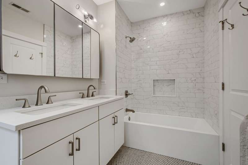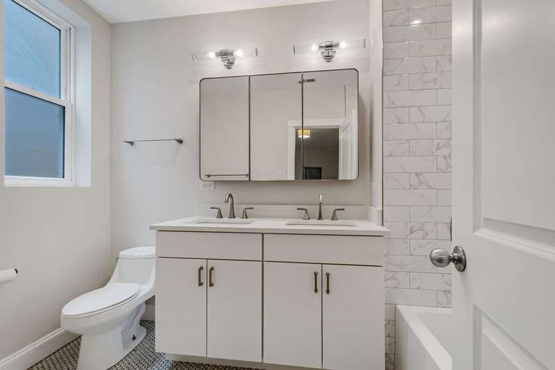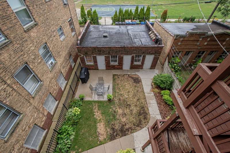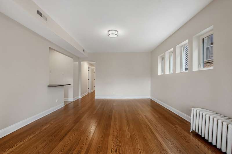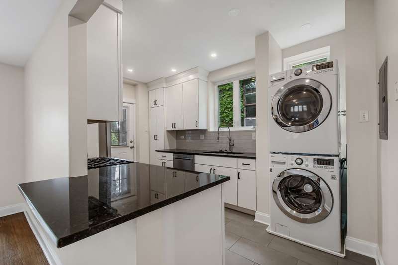 Just renovated and ready to occupy, large centrally cooled top floor flat in this quality, beautifully cared for and upgraded 4-unit building. Brand new kitchen with tall white cabinets, black granite countertops, glass tile back-splash, porcelain tile floor, all new stainless appliances, and microwave with exterior exhaust. Brand new bathrooms with white vanities, lovely mirrors and lighting, tile shower enclosures and handsome mosaic tile floors. HANDY full-sized washer & dryer in the unit! Features include tall ceilings, gleaming hardwood floors, beautiful moldings, newer windows and new window blinds, and the primary bedroom has a fitted walk-in closet and private bath. Spiffy hall bath serves two additional bedrooms with good closet space. Enjoy the front room living with north, east and south views of the tree-lined neighborhood, a great size with lovely light, and has been used as a spacious home office, plus find a wonderful large family room opening to the kitchen and the rear sunroom with new granite bar and beverage fridge which serves nicely as a dining room if needed...glorious west view of the park and sunsets too! Heat and water included in the rent. Dog ok with addnl pet rent $30/month. Damage/security deposit required and credit/background check required. Self-managed building in outstanding SE location convenient to the beach, parks, loop trains, shopping and restaurants. Flexible space in this quiet building of friendly neighbors. Parking is good on Michigan but really good on Keeney just north or Forest Ave due west across the park.