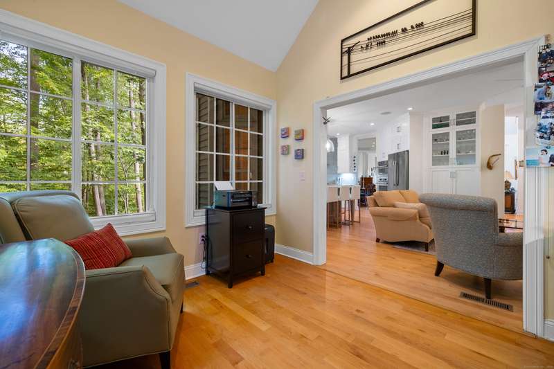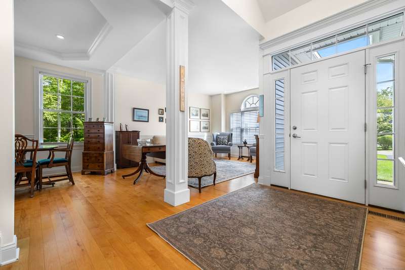 Luxury 3-Bedroom Condo in River Walk, Branford CT - Walkable, Elegant, and Effortless Living Welcome to River Walk, Branford's premier shoreline community, where comfort meets convenience. This spacious 3-bedroom, 2.5 bath condominium offers the perfect blend of luxury living and low-maintenance lifestyle for those 55 and older seeking to relocate to the Connecticut shoreline. Step into a bright, open-concept layout featuring high ceilings, hardwood floors, and upscale finishes throughout. The chandelier in the entry is easily lowered to facilitate cleaning and the changing of light bulbs. The updated chef's kitchen boasts granite countertops, stainless steel appliances, and a kitchen island perfect for morning coffee or evening entertaining. Enjoy main-level living with a generous primary suite, complete with a walk-in closet and spa-inspired bathroom. Upstairs, find two additional bedrooms and a room ideal for hobbies, or a home office. Outside, relax on your private deck or take
