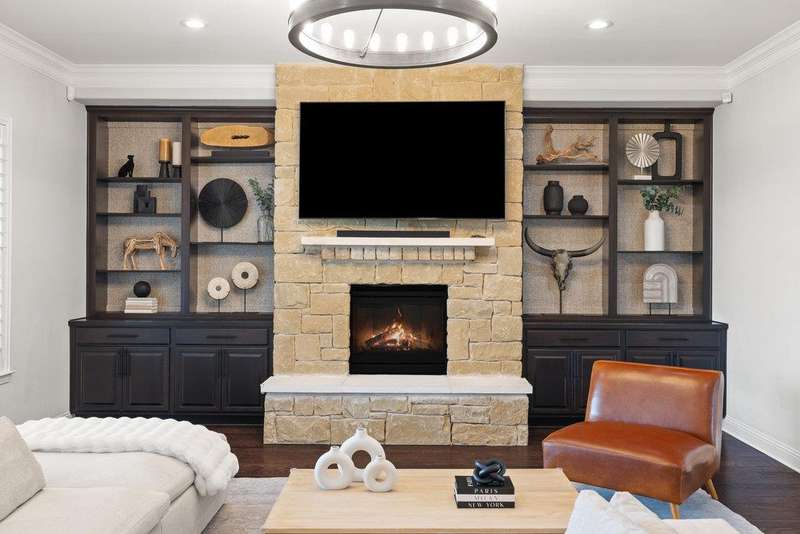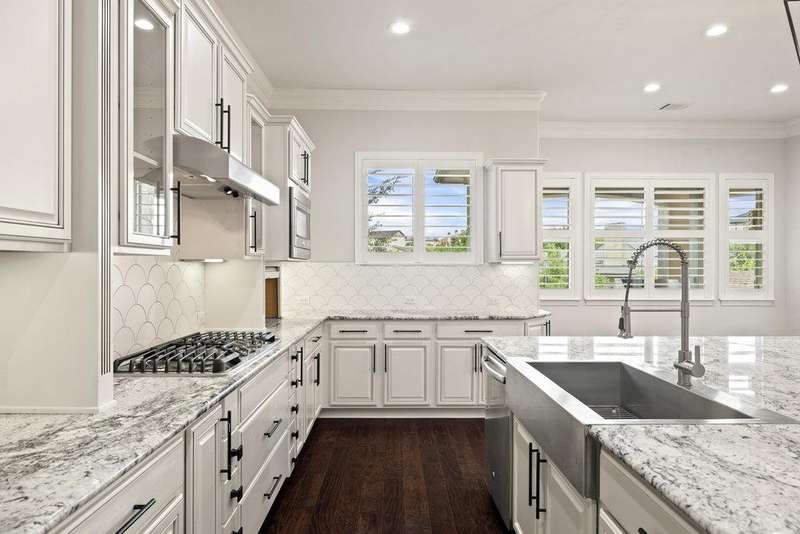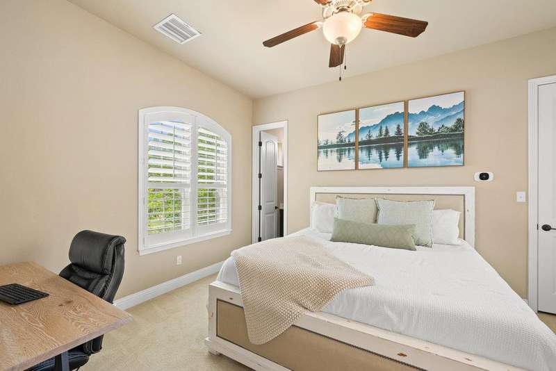 Step outside to enjoy an impressive backyard retreat. Multiple covered living spaces include an upstairs outdoor kitchen and lounge, along with a 600+ sq ft cabana featuring a vaulted ceiling, full outdoor kitchen, and stone fireplace with TV mount. Overlooking the pool and hot tub, this private oasis is perfect for gatherings year-round. A three-car garage and extended driveway with an in-ground basketball hoop add everyday convenience.